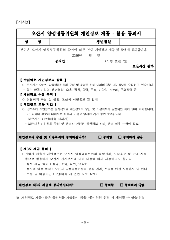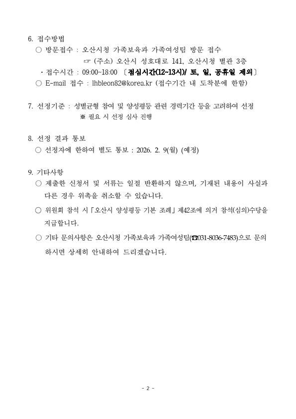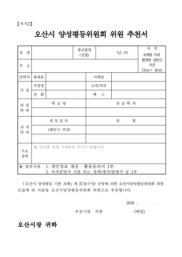 오산시 양성평등위원회 위원 공개모집