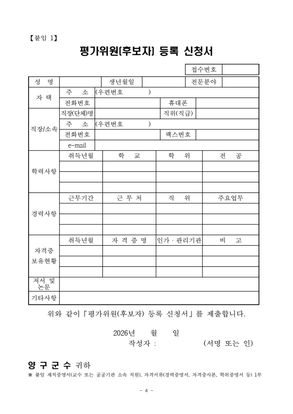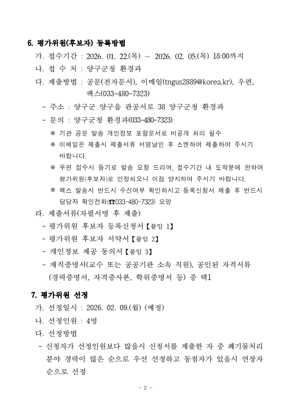 위원풀 구성 요청 기관 이름, 생년월일, 나이, 주소, 이메일, 휴대폰번호, 사진, 경력, 이력, 보유 자격증 중 제공받는 자와 제공협의한 항목 위원풀 구성원에 대한 선발 및 운영 안내 해당 공고의 선발 종료 시까지