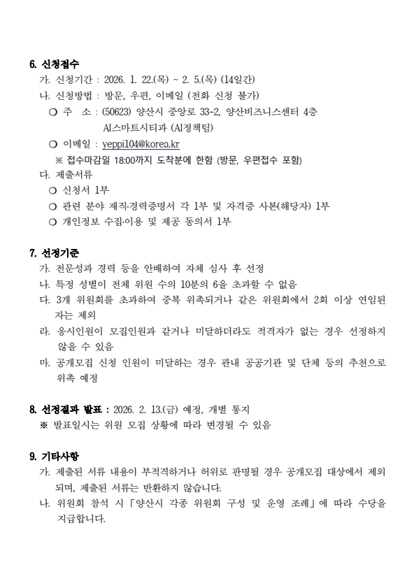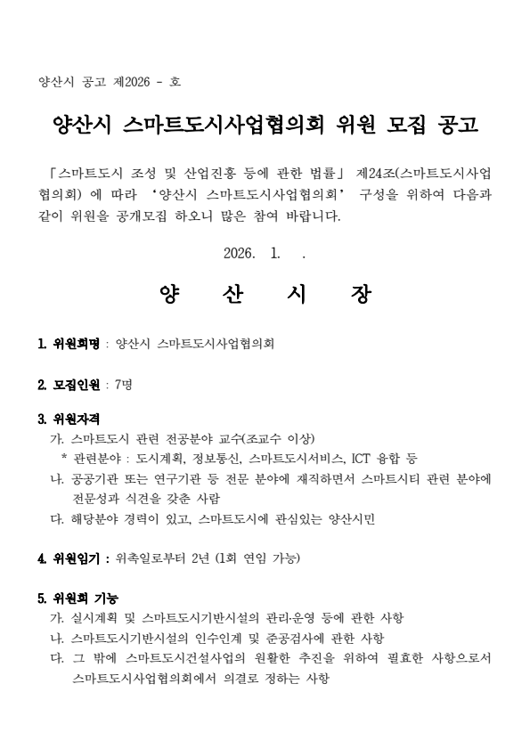양산시 스마트도시사업협의회 위원 모집
