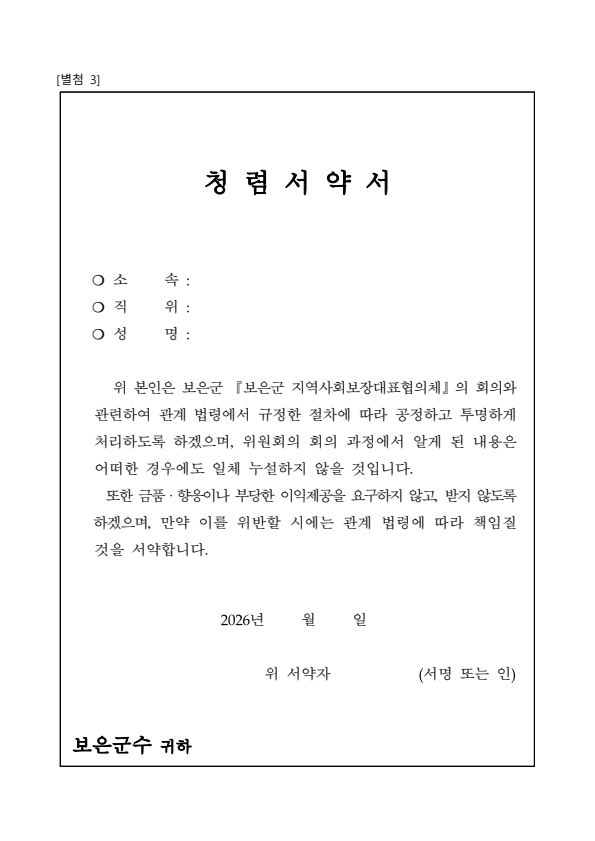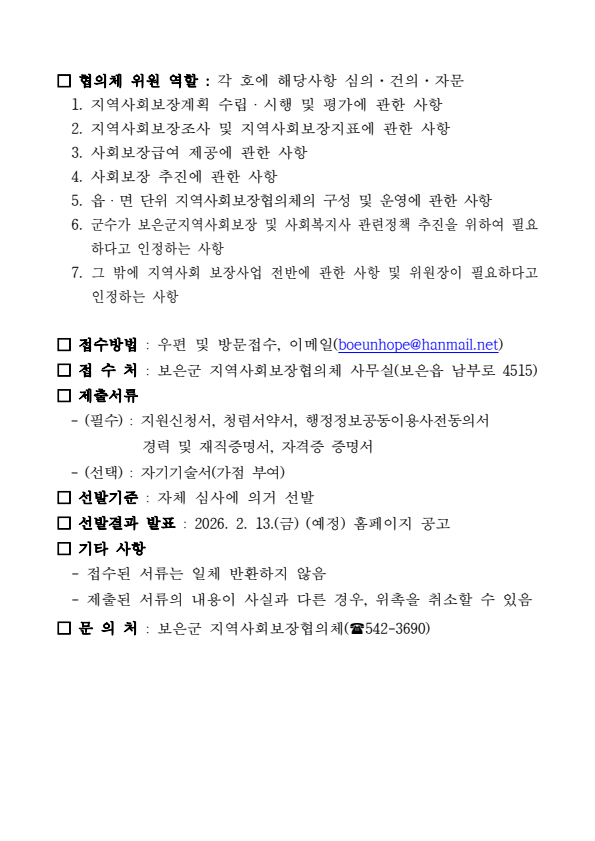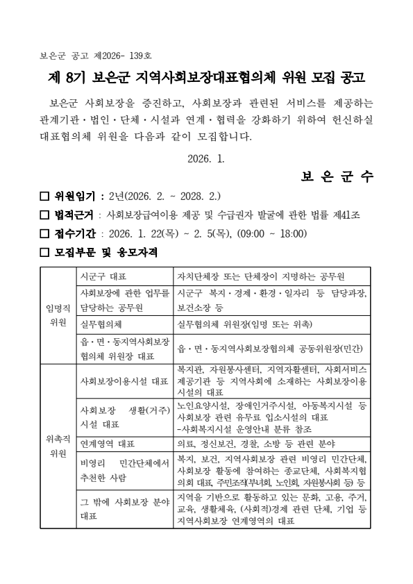 제8기 보은군 지역사회보장대표협의체 위원 공개모집