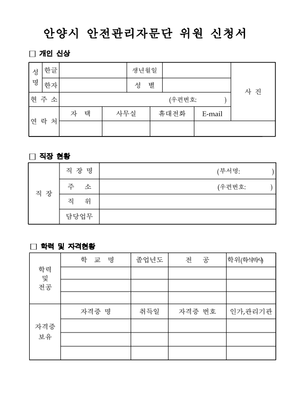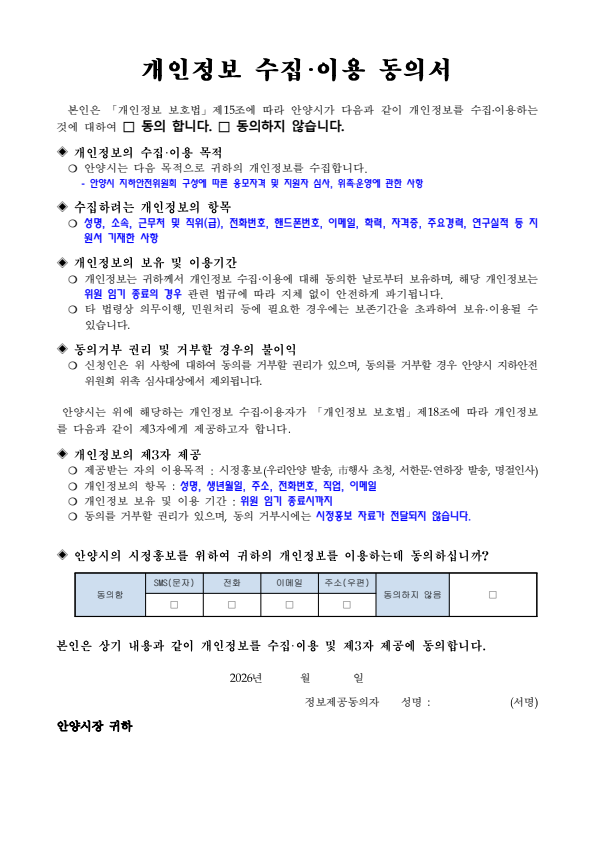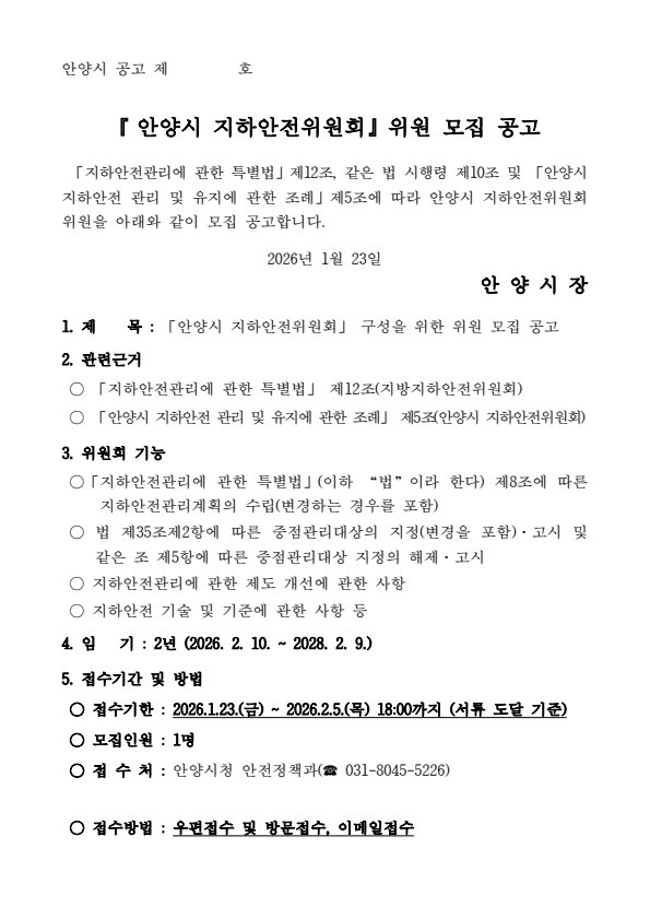 안양시 지하안전위원회 위원 모집