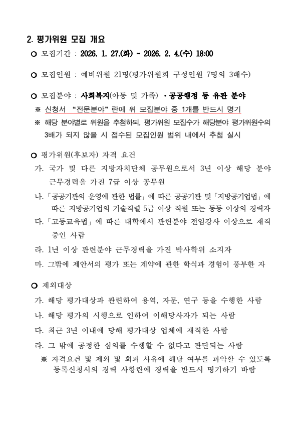 위원풀 구성 요청 기관 이름, 생년월일, 나이, 주소, 이메일, 휴대폰번호, 사진, 경력, 이력, 보유 자격증 중 제공받는 자와 제공협의한 항목 위원풀 구성원에 대한 선발 및 운영 안내 해당 공고의 선발 종료 시까지