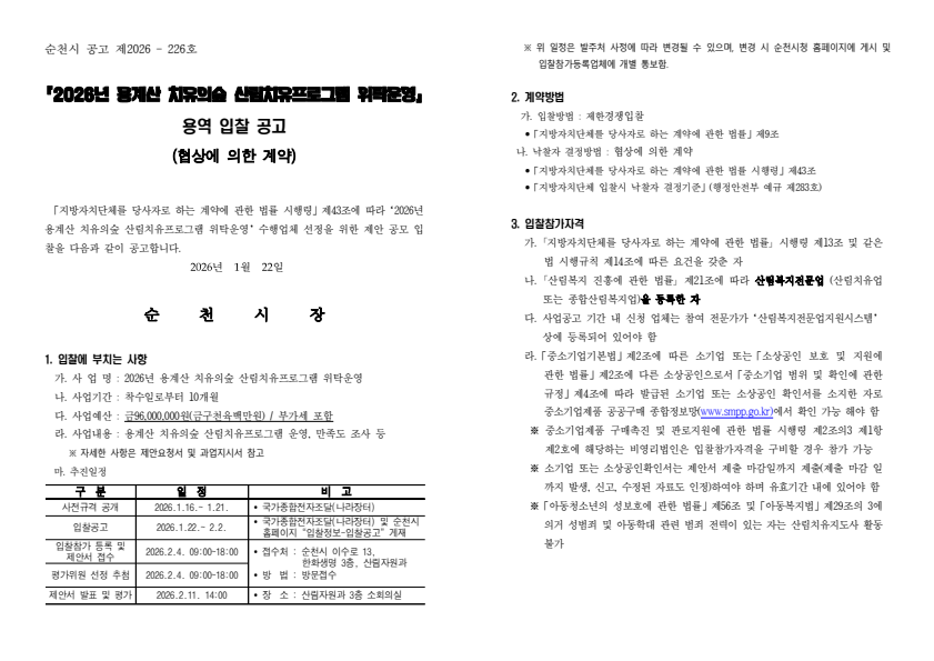 순천시 2026년 용계산 치유의숲 산림치유프로그램 위탁운영 제안서 평가위원 모집