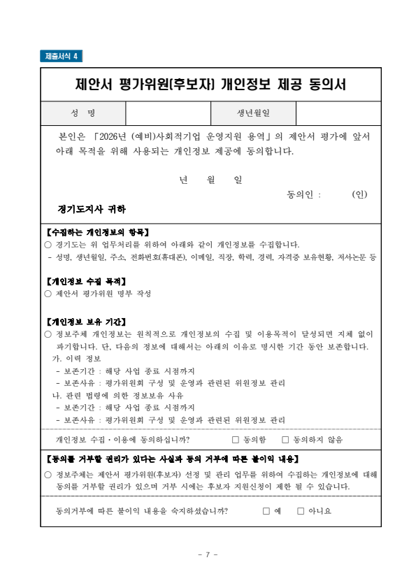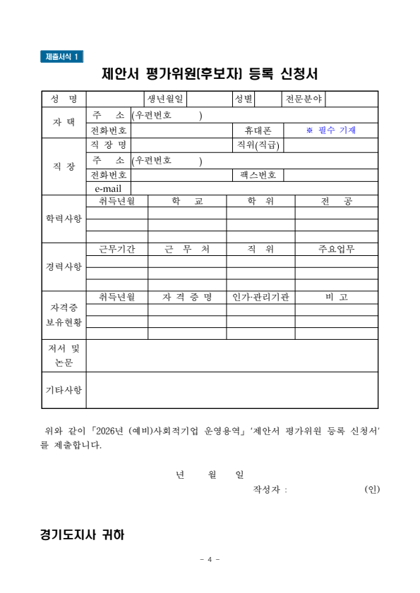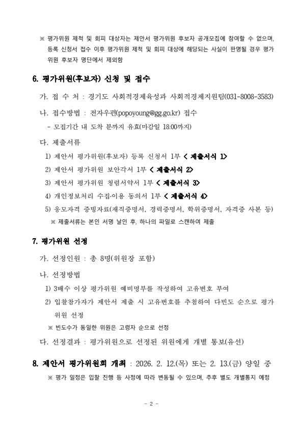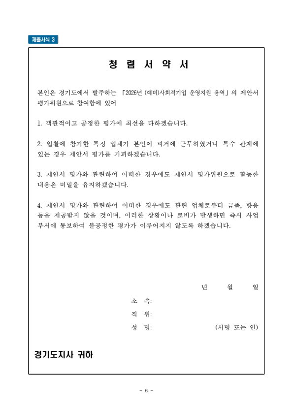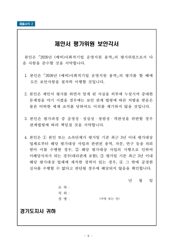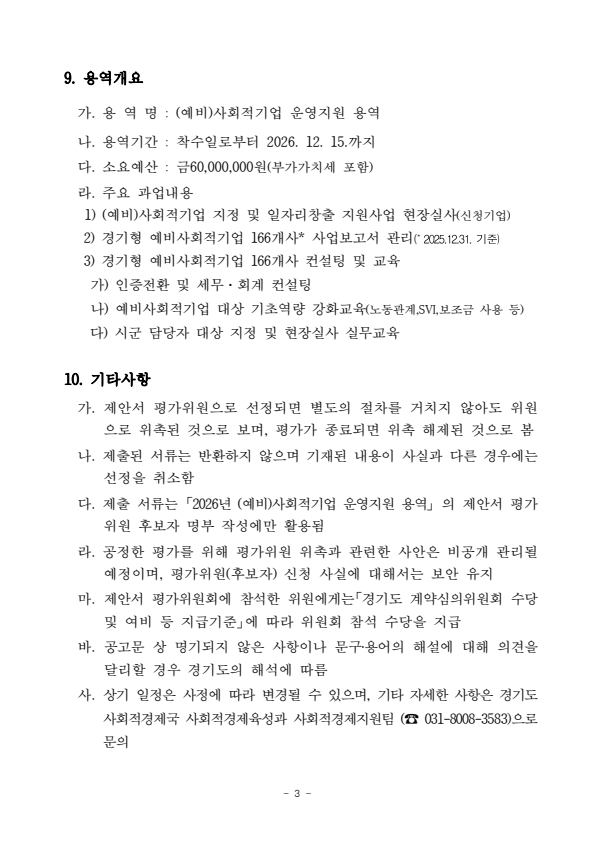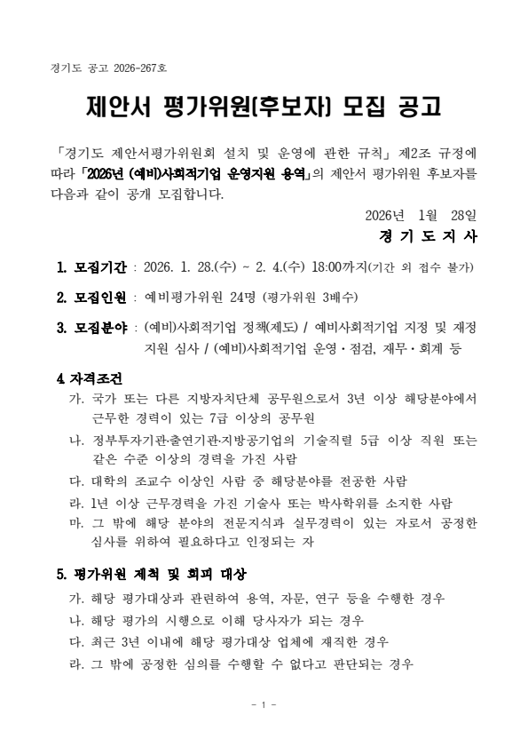 경기도 2026년 (예비)사회적기업 운영지원 용역 제안서 평가위원(후보자) 모집
