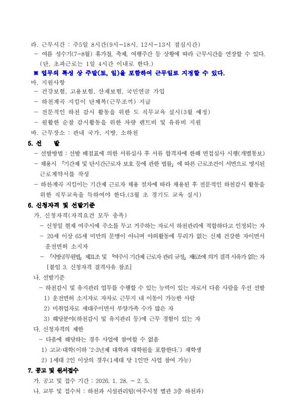 여주시 2026년 하천과 기간제근로자(하천계곡지킴이) 모집