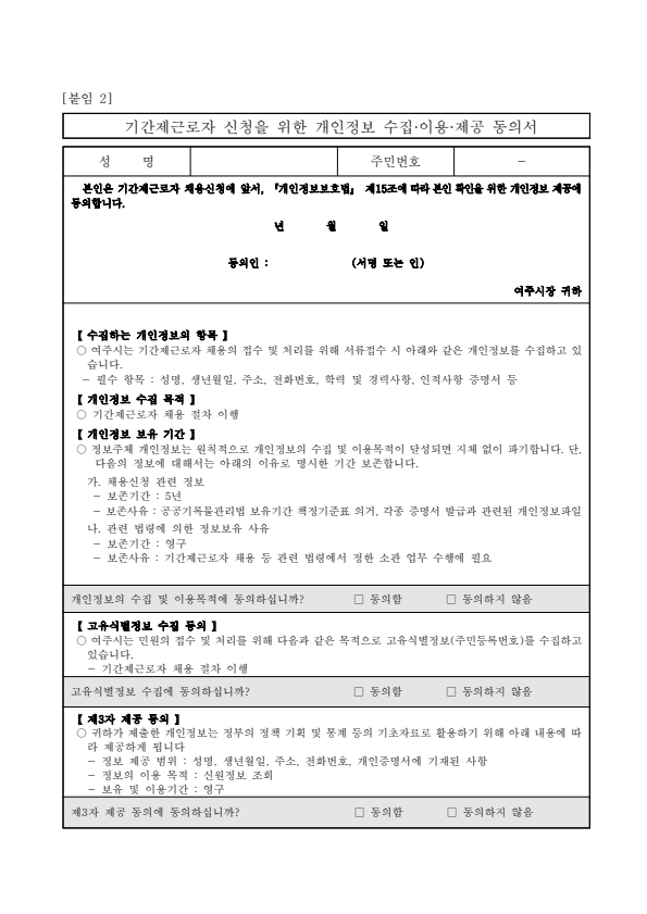 위원풀 구성 요청 기관 이름, 생년월일, 나이, 주소, 이메일, 휴대폰번호, 사진, 경력, 이력, 보유 자격증 중 제공받는 자와 제공협의한 항목 위원풀 구성원에 대한 선발 및 운영 안내 해당 공고의 선발 종료 시까지