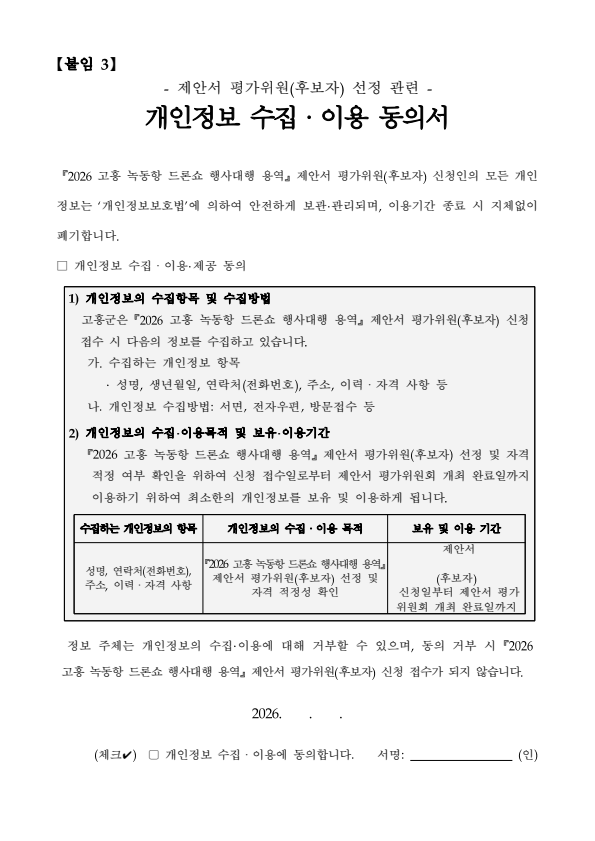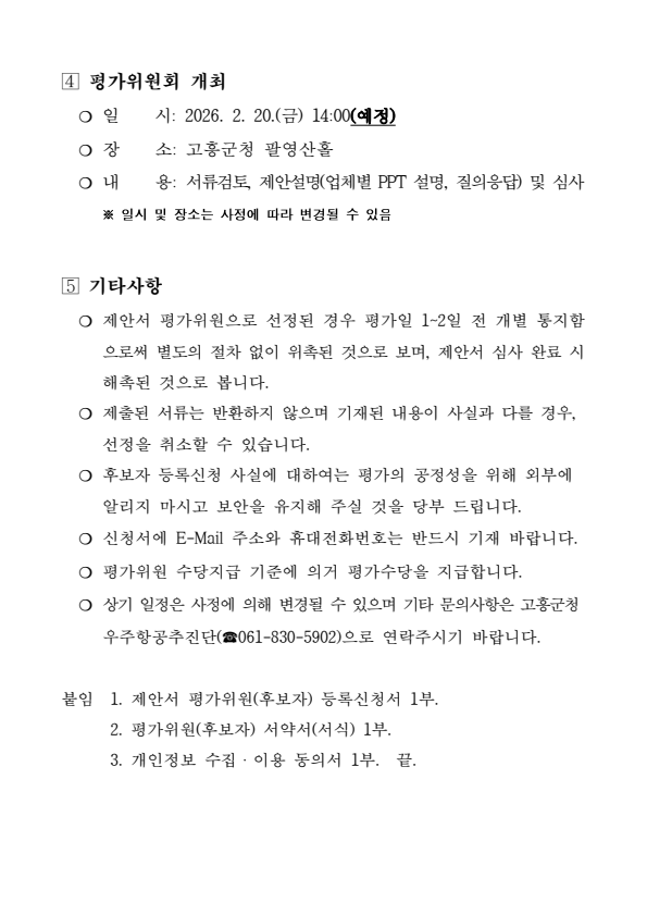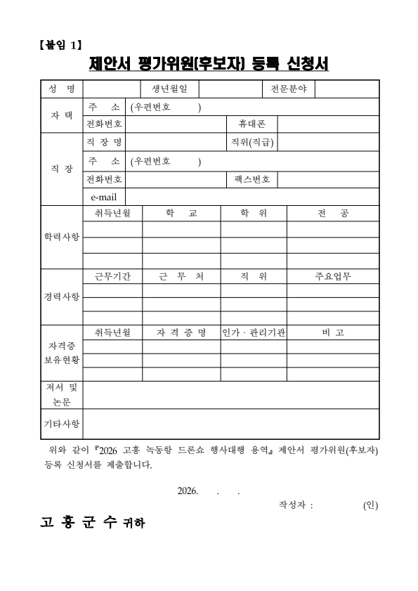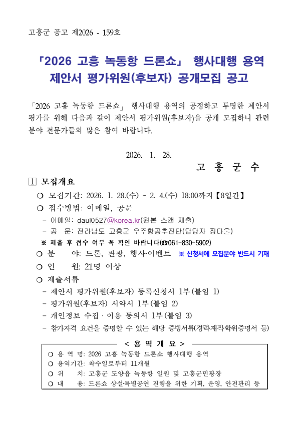 2026 고흥 녹동항 드론쇼 행사대행 용역 제안서 평가위원(후보자) 공개모집