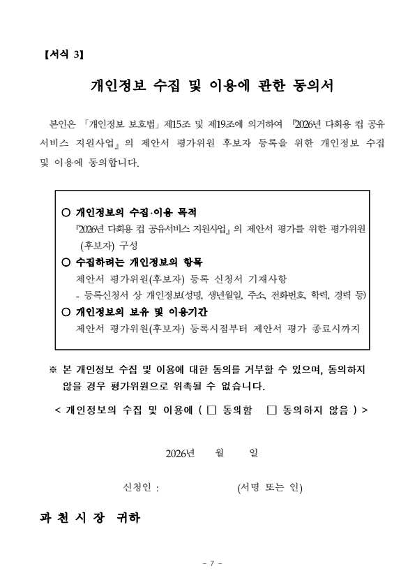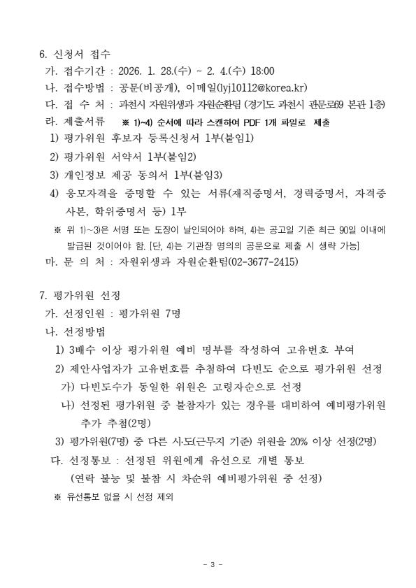 위원풀 구성 요청 기관 이름, 생년월일, 나이, 주소, 이메일, 휴대폰번호, 사진, 경력, 이력, 보유 자격증 중 제공받는 자와 제공협의한 항목 위원풀 구성원에 대한 선발 및 운영 안내 해당 공고의 선발 종료 시까지