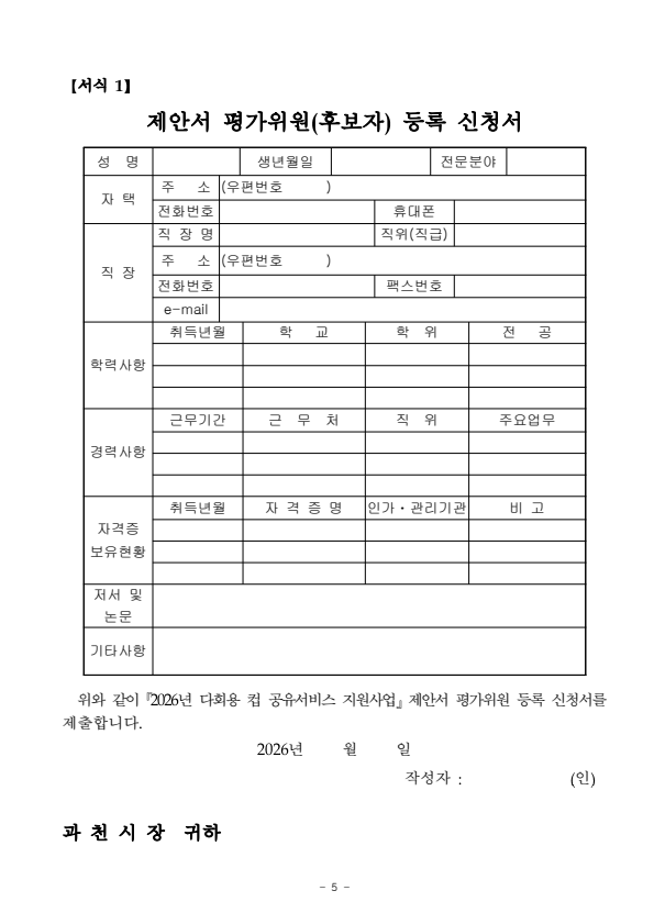 과천시 2026년 다회용 컵 공유서비스 지원사업 제안서 평가위원(후보자) 모집