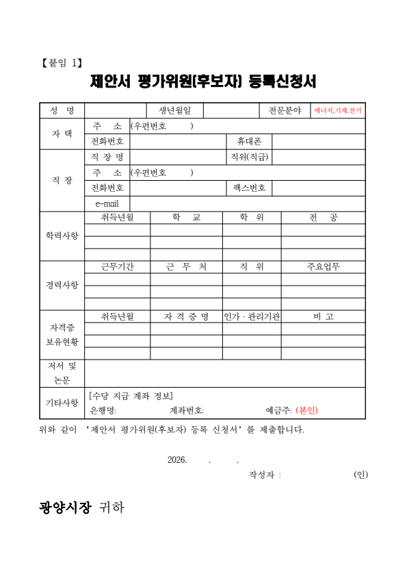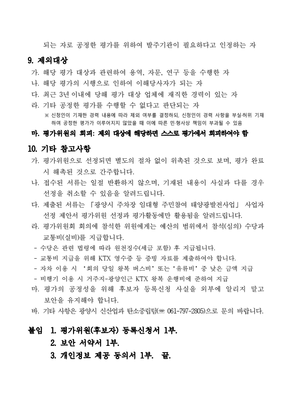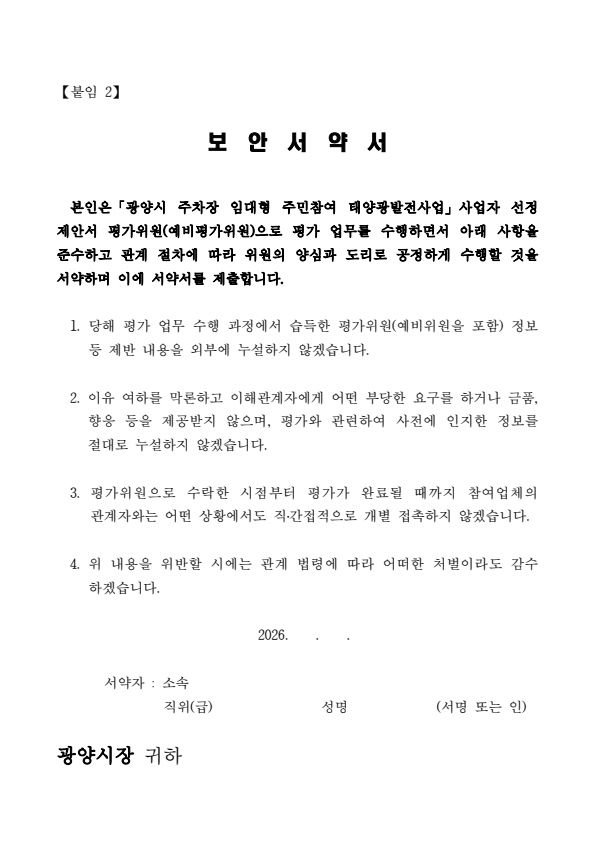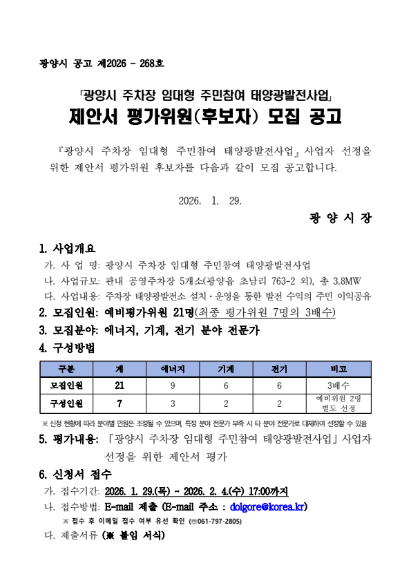 광양시 주차장 임대형 주민참여 태양광발전사업 제안서 평가위원(후보자) 모집