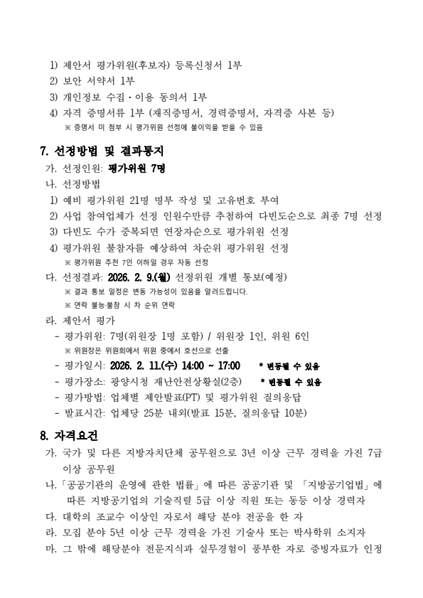 위원풀 구성 요청 기관 이름, 생년월일, 나이, 주소, 이메일, 휴대폰번호, 사진, 경력, 이력, 보유 자격증 중 제공받는 자와 제공협의한 항목 위원풀 구성원에 대한 선발 및 운영 안내 해당 공고의 선발 종료 시까지