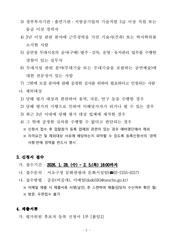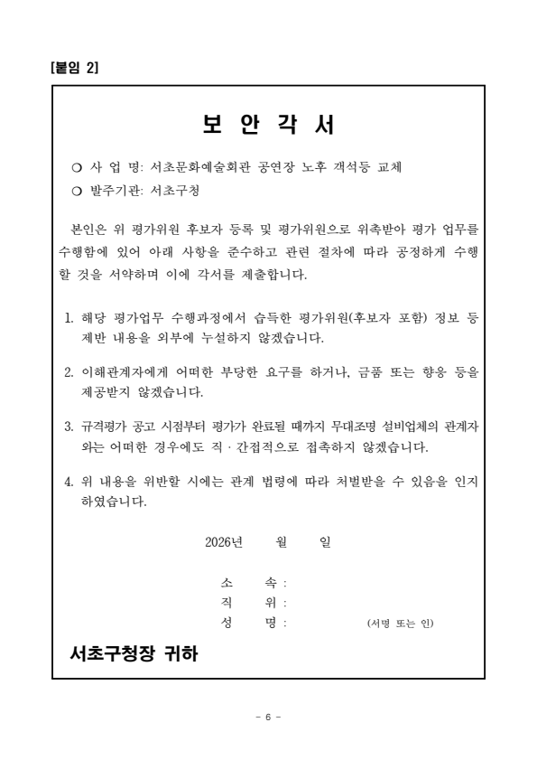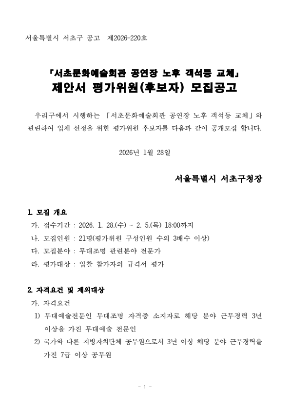 서초구 서초문화예술회관 공연장 노후 객석등 교체 제안서 평가위원(후보자) 모집