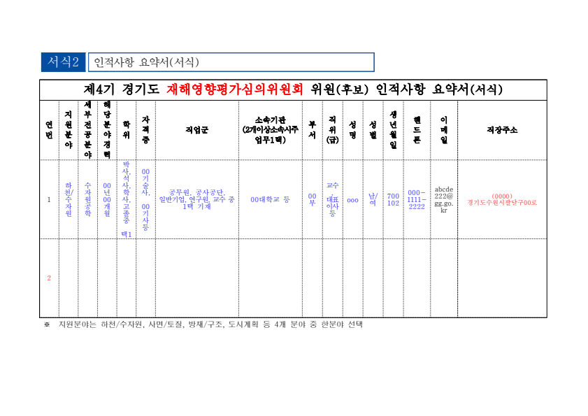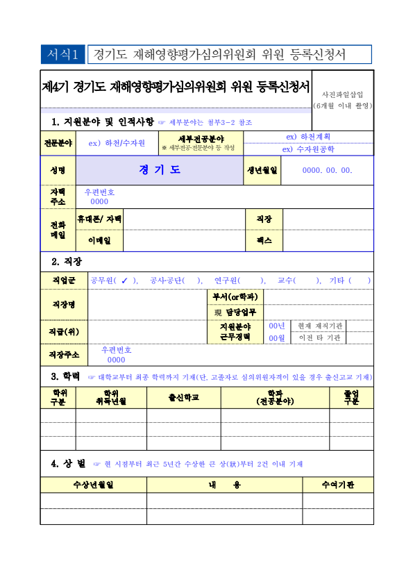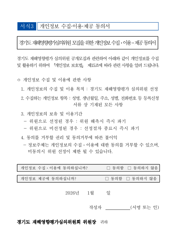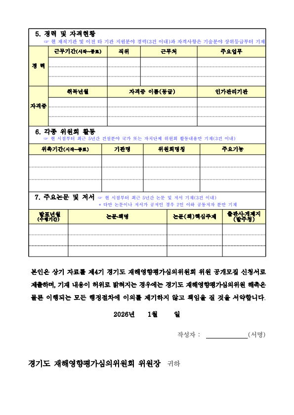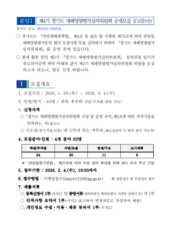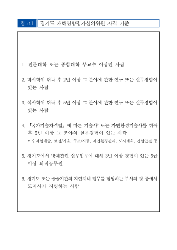 제4기 경기도 재해영향평가심의위원회 공개 추가모집