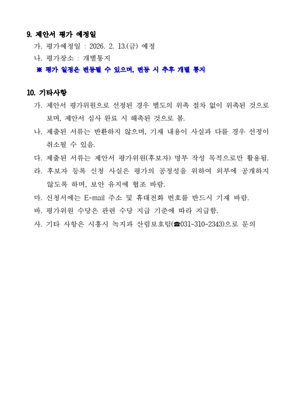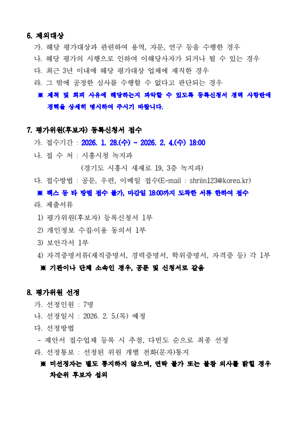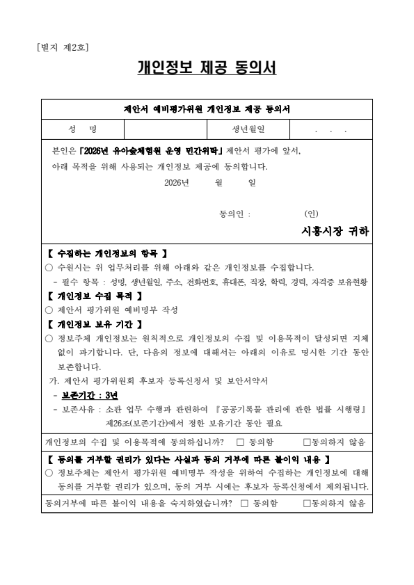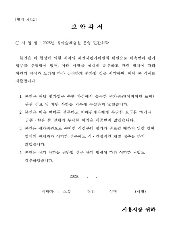 2026년 시흥시 유아숲체험원 운영 민간위탁 제안서 평가위원(후보자) 모집