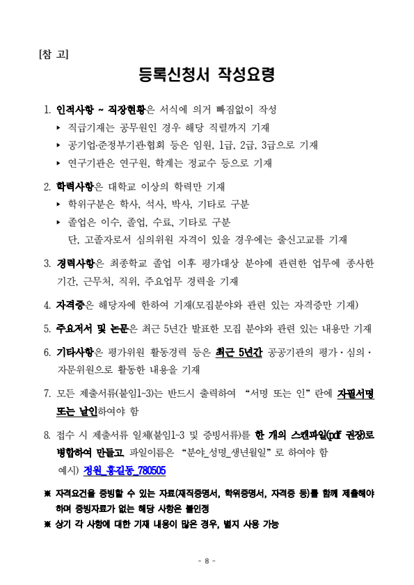 위원풀 구성 요청 기관 이름, 생년월일, 나이, 주소, 이메일, 휴대폰번호, 사진, 경력, 이력, 보유 자격증 중 제공받는 자와 제공협의한 항목 위원풀 구성원에 대한 선발 및 운영 안내 해당 공고의 선발 종료 시까지