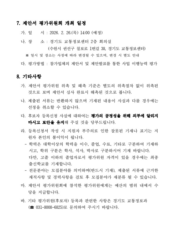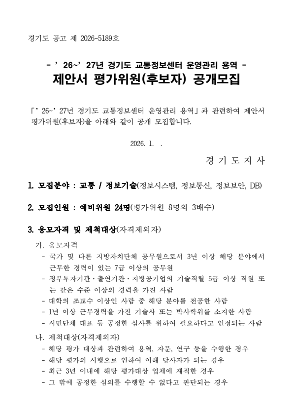 '26~'27년 경기도 교통정보센터 운영관리 용역 제안서 평가위원 모집