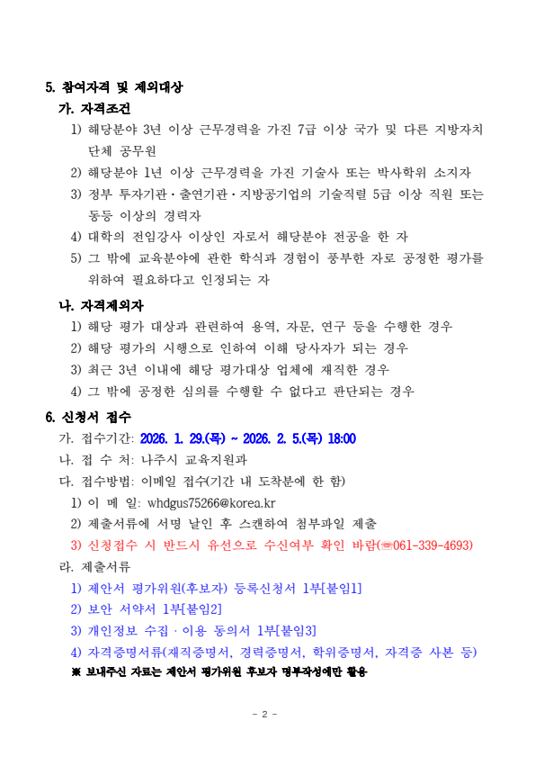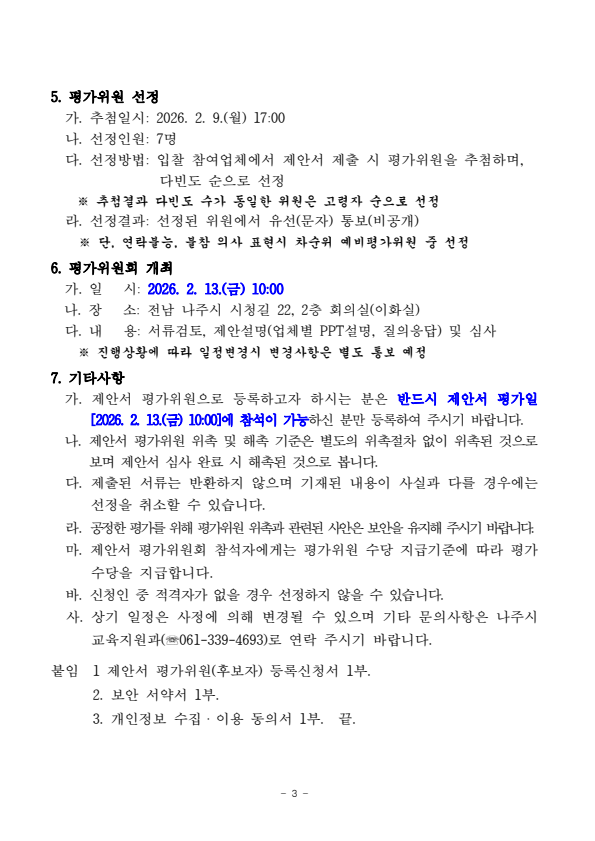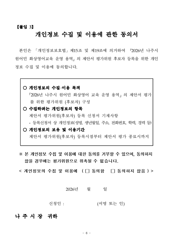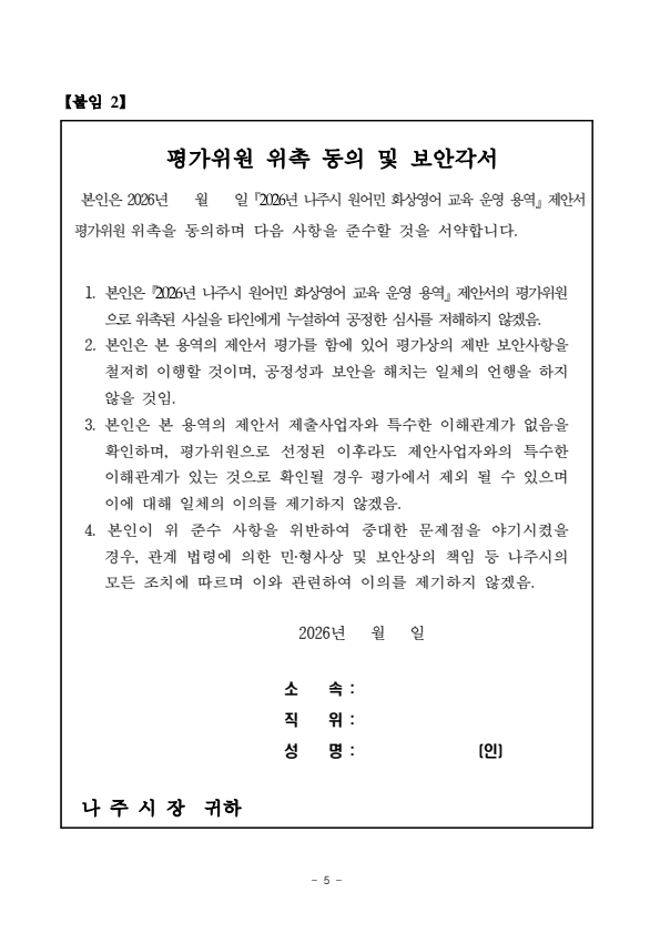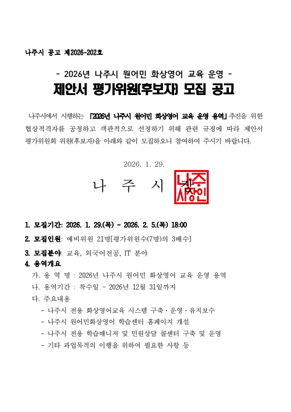 2026년 나주시 원어민 화상영어 교육 운영 용역 제안서 평가위원(후보자) 모집