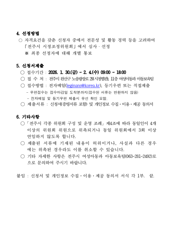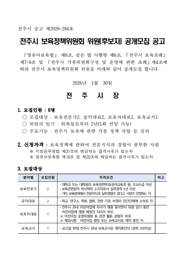전주시 보육정책위원회 위원 공개모집