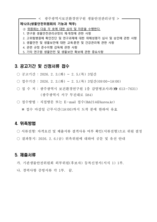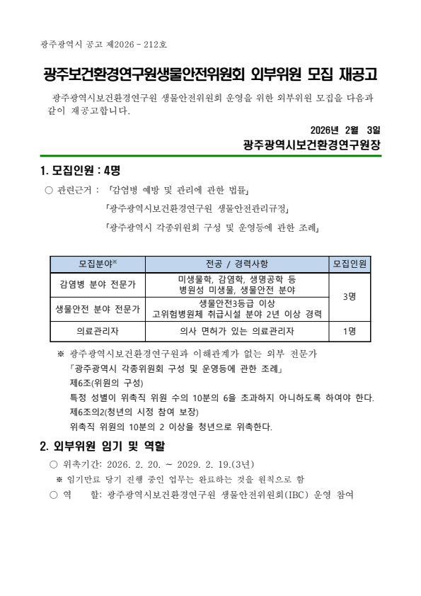 광주광역시 보건환경연구원 생물안전위원회 외부위원 재모집