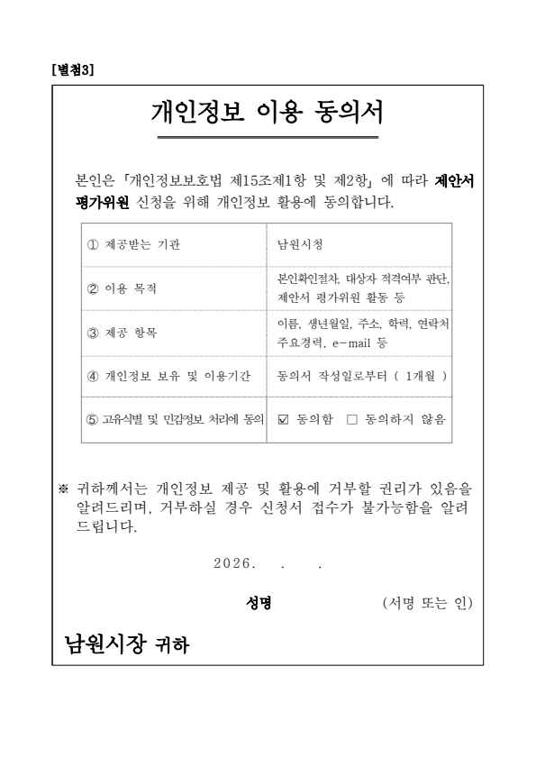 위원풀 구성 요청 기관 이름, 생년월일, 나이, 주소, 이메일, 휴대폰번호, 사진, 경력, 이력, 보유 자격증 중 제공받는 자와 제공협의한 항목 위원풀 구성원에 대한 선발 및 운영 안내 해당 공고의 선발 종료 시까지