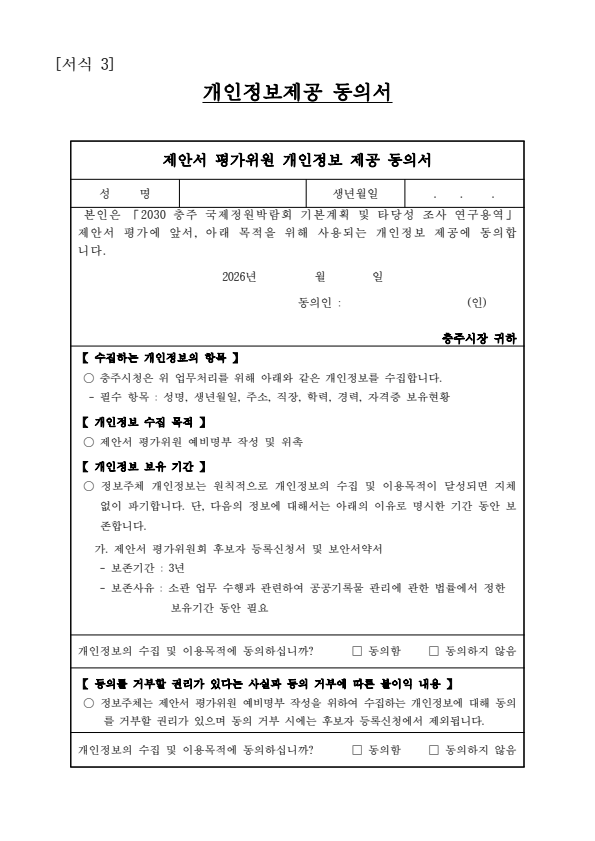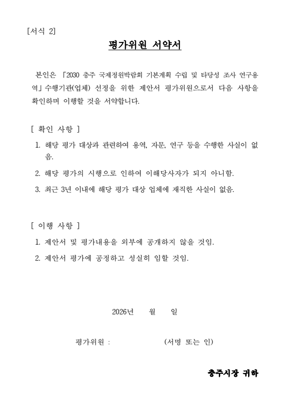 충주시 2030 충주국제정원박람회 기본계획 수립 및 타당성 조사 연구용역 제안서 평가위원(후보자) 모집