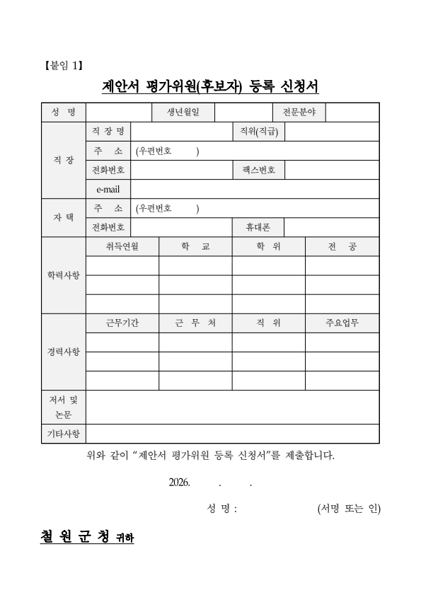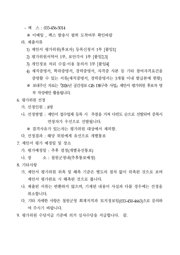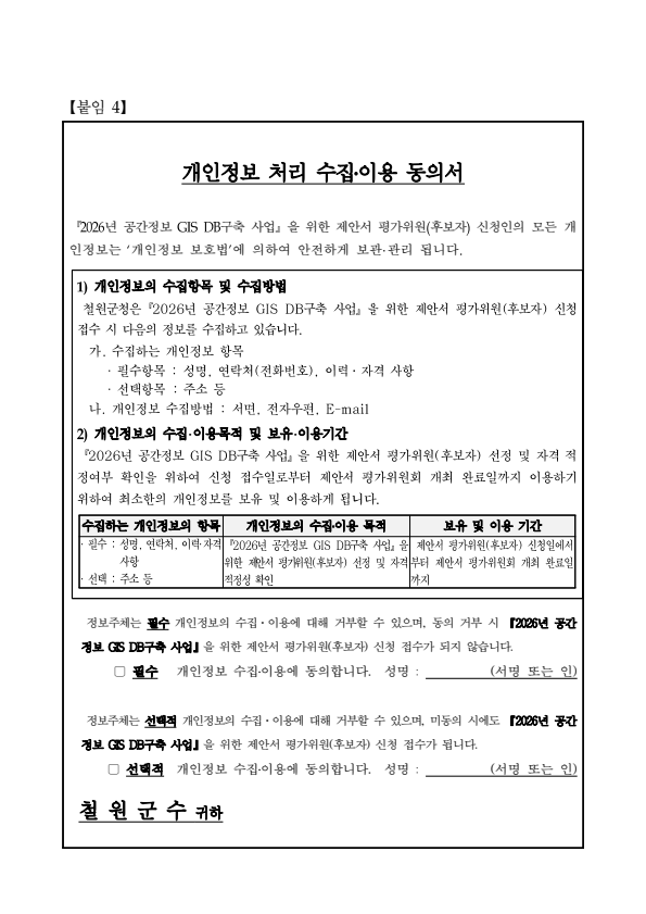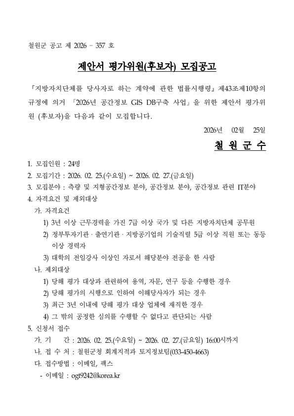 철원군 2026년 공간정보 GIS DB구축사업 제안서 평가위원(후보자) 모집