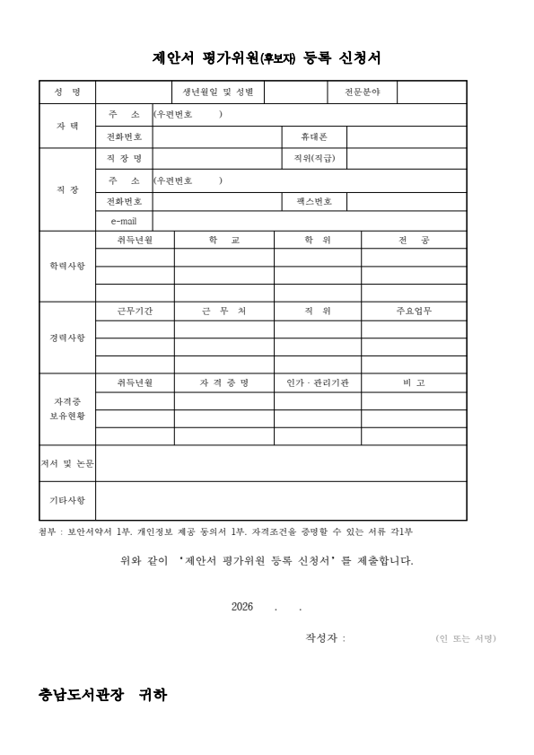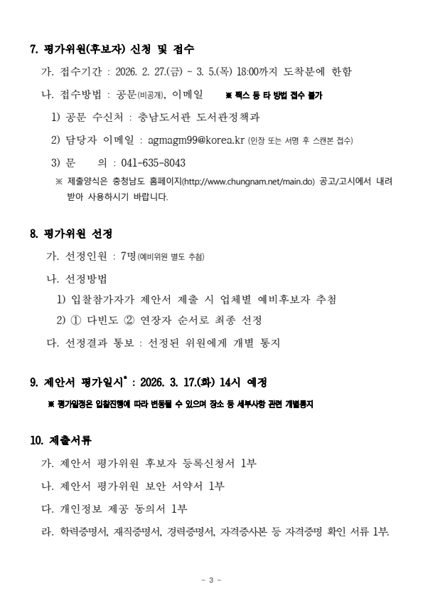 | 위원풀 구성 요청 기관 | 이름, 생년월일, 나이, 주소, 이메일, 휴대폰번호, 사진, 경력, 이력, 보유 자격증 중 제공받는 자와 제공협의한 항목 | 위원풀 구성원에 대한 선발 및 운영 안내 | 해당 공고의 선발 종료 시까지 |