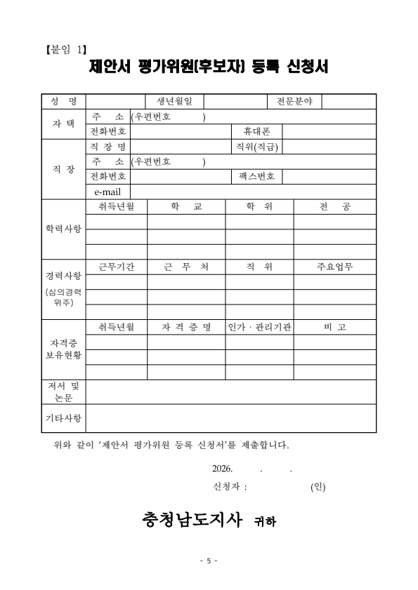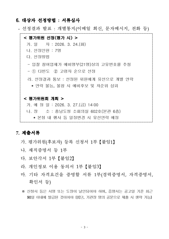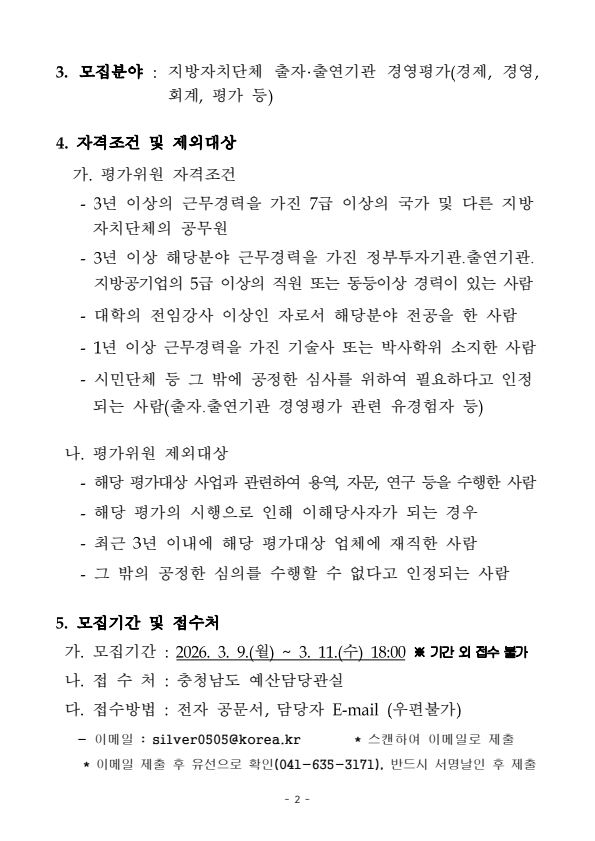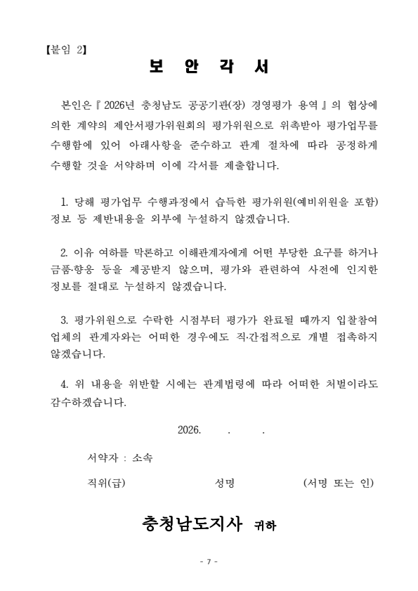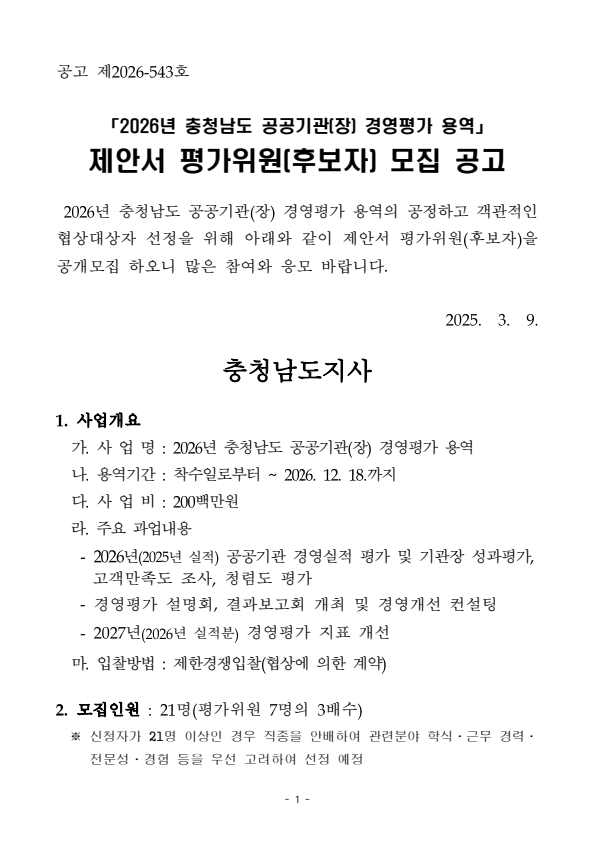 충청남도 2026년(2025년 실적) 공공기관(장) 경영평가 제안서 평가위원(후보자) 모집