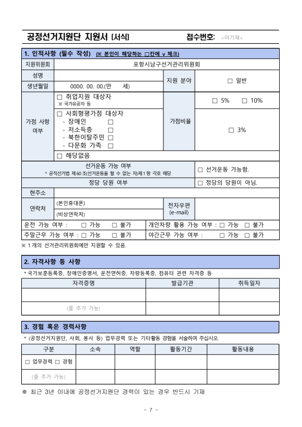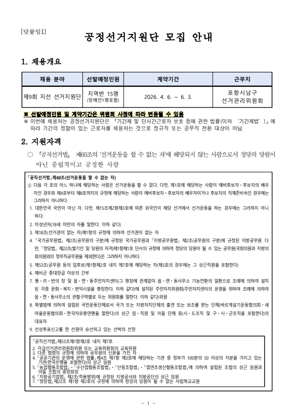 포항시남구선거관리위원회 제9회 전국동시지방선거 공정선거지원단 모집