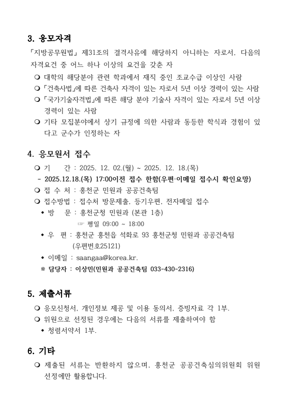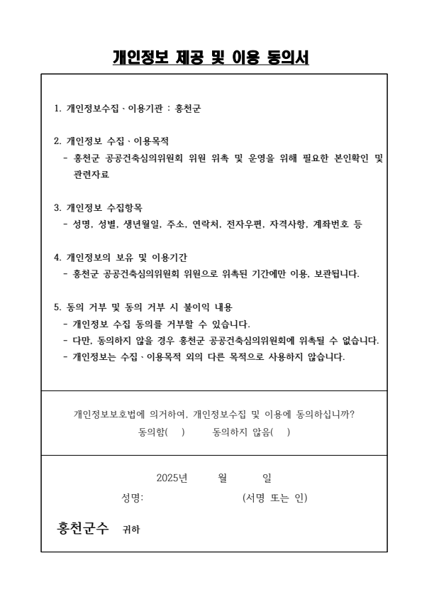 위원풀 구성 요청 기관 이름, 생년월일, 나이, 주소, 이메일, 휴대폰번호, 사진, 경력, 이력, 보유 자격증 중 제공받는 자와 제공협의한 항목 위원풀 구성원에 대한 선발 및 운영 안내 해당 공고의 선발 종료 시까지