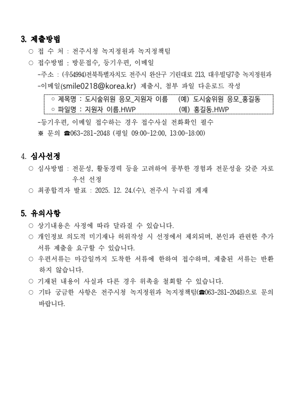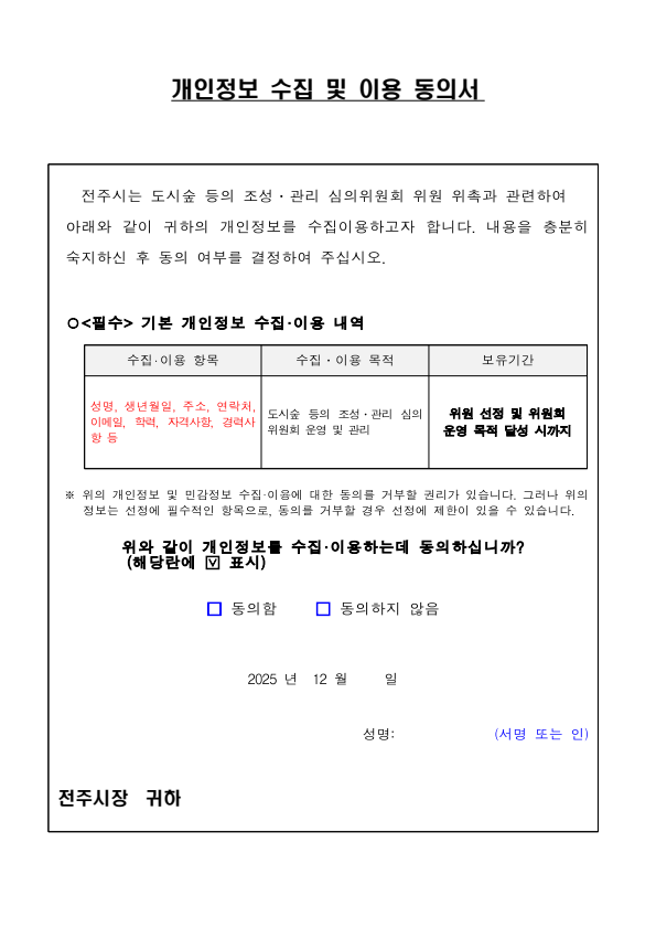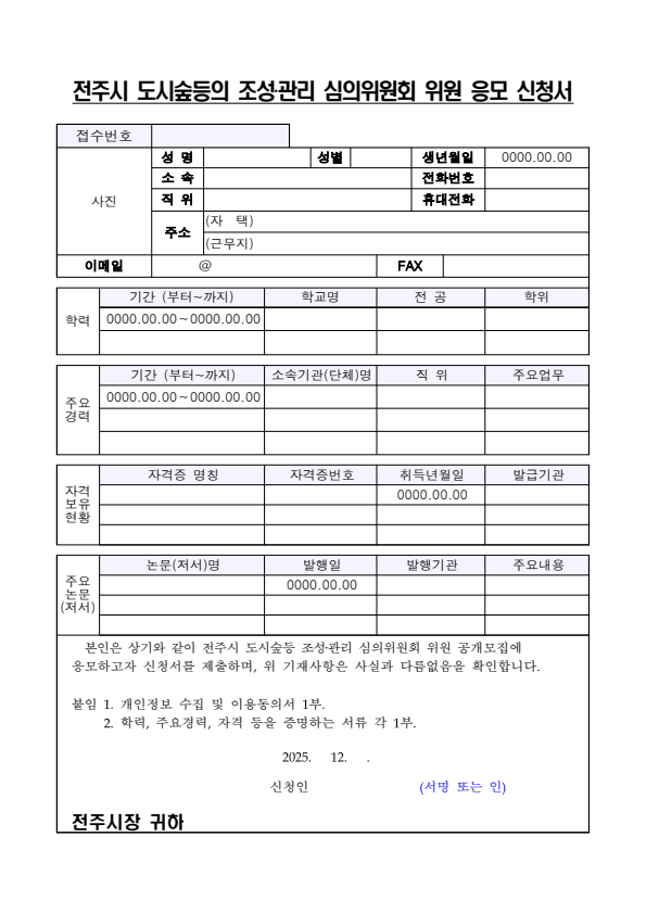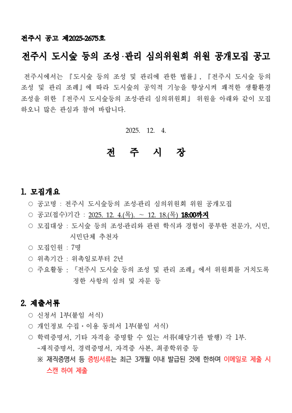 전주시 도시숲등의 조성・관리 심의위원회 위원 공개모집
