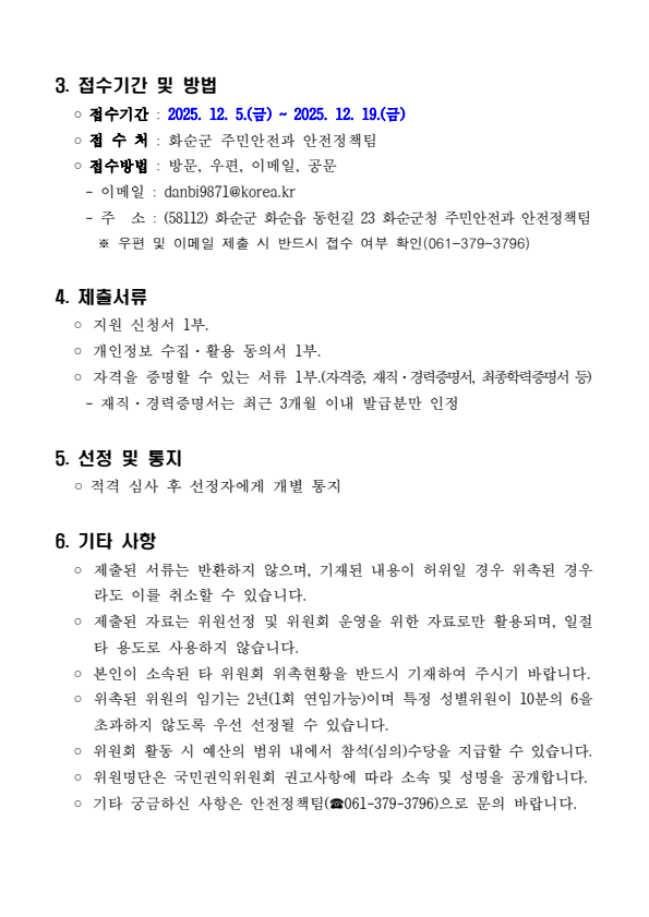 위원풀 구성 요청 기관 이름, 생년월일, 나이, 주소, 이메일, 휴대폰번호, 사진, 경력, 이력, 보유 자격증 중 제공받는 자와 제공협의한 항목 위원풀 구성원에 대한 선발 및 운영 안내 해당 공고의 선발 종료 시까지