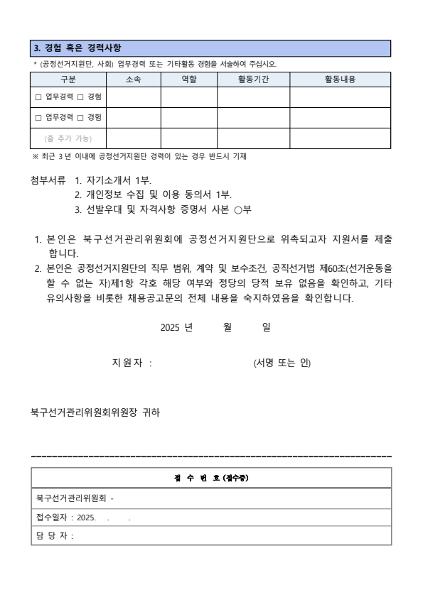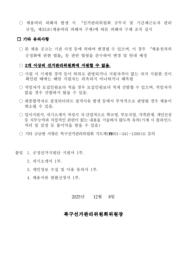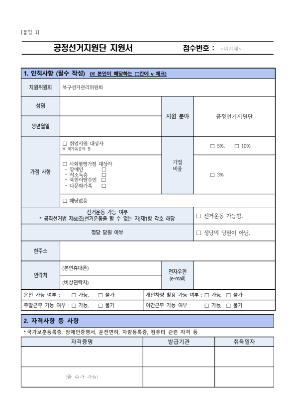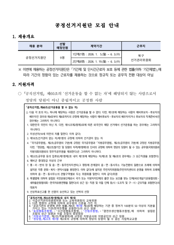 부산광역시 북구 제9회 전국동시지방선거 일반공정선거지원단 모집