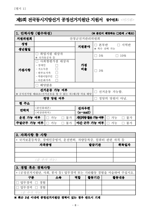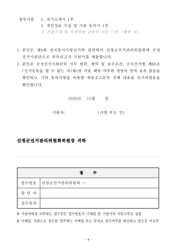 산청군 제9회 전국동시지방선거 일반공정선거지원단 모집