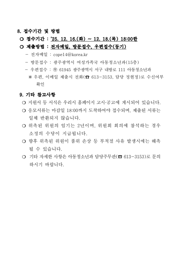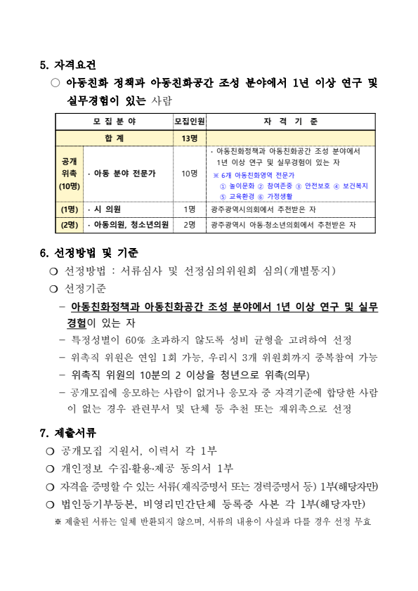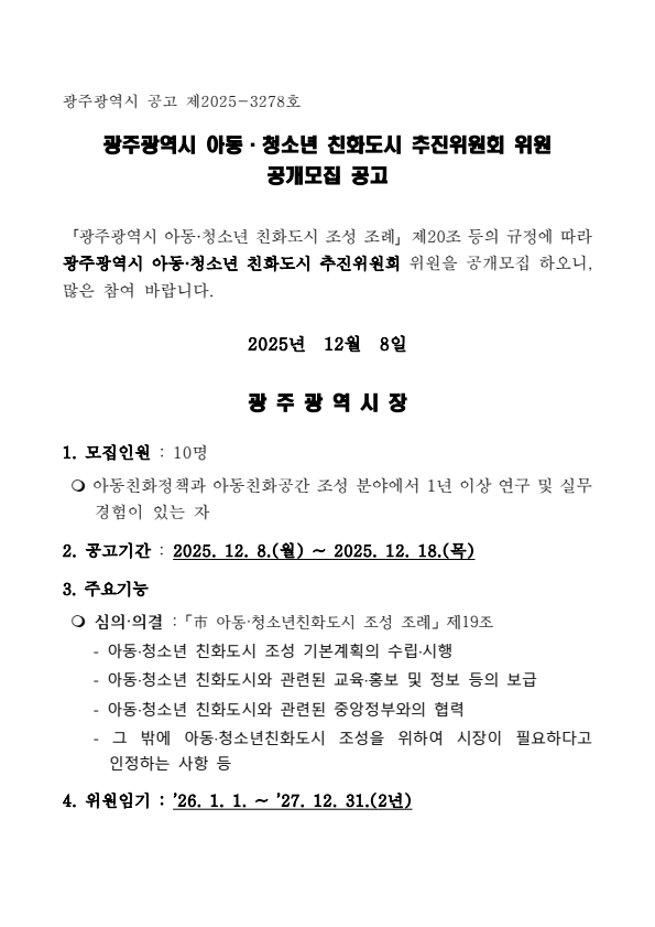 광주광역시 아동·청소년친화도시 추진위원회 위원 공개모집