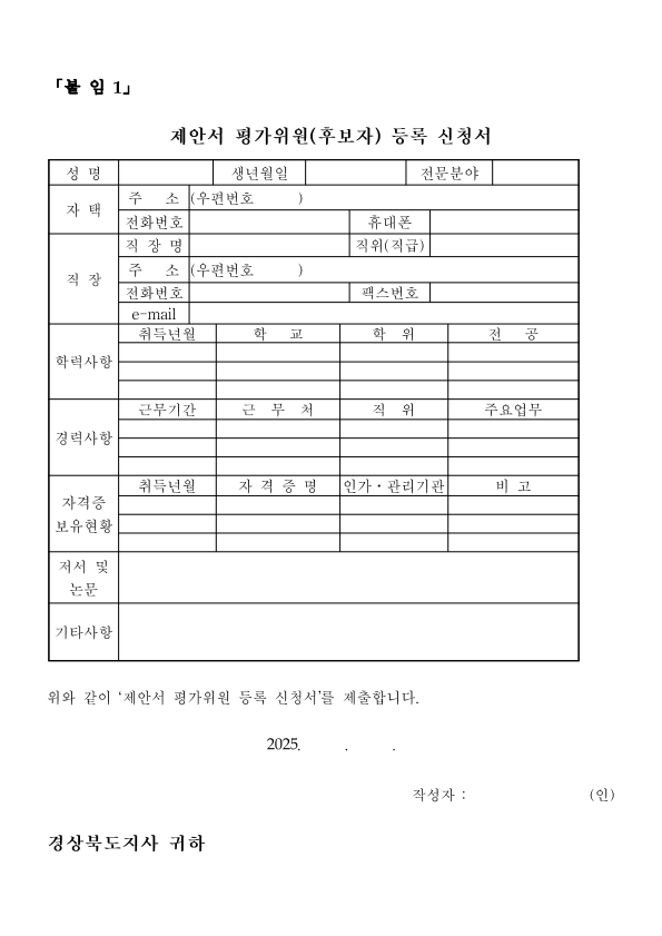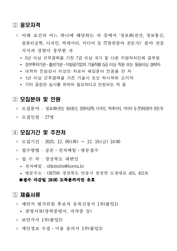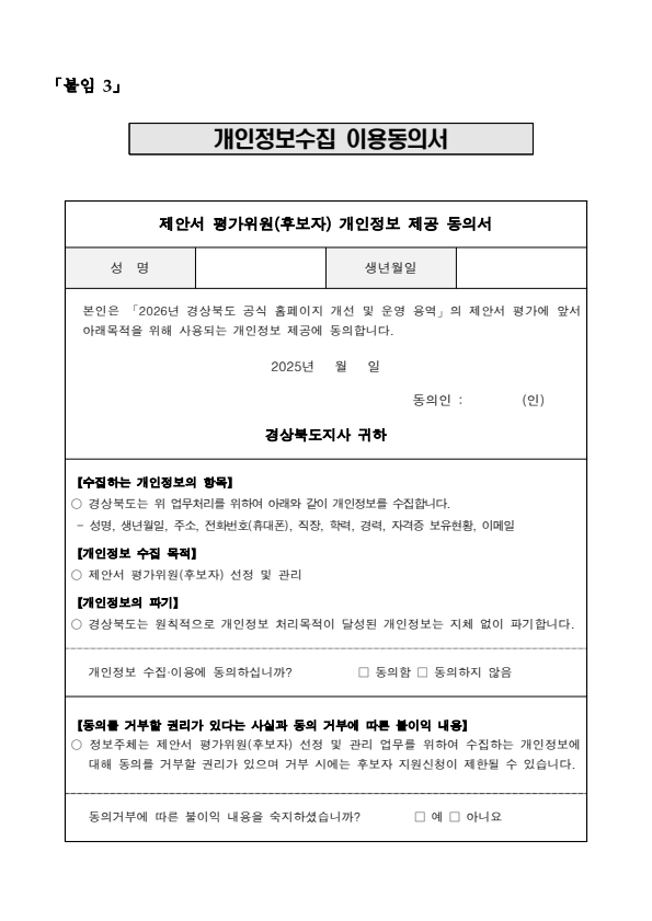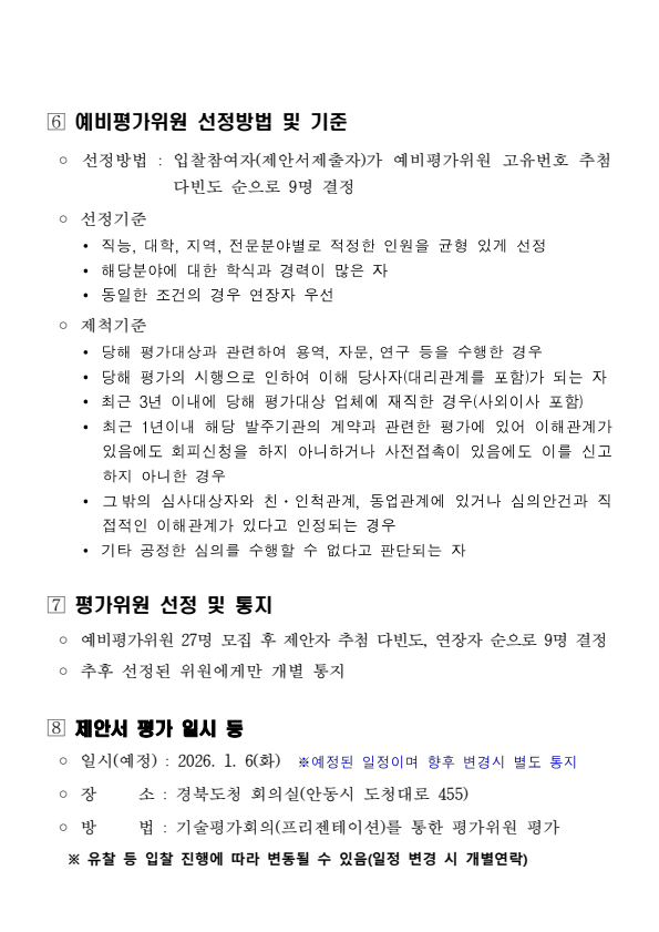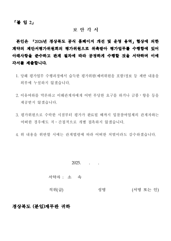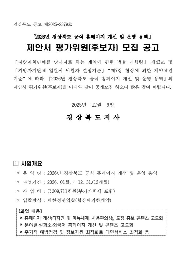 2026년 경상북도 공식 홈페이지 개선 및 운영 용역 제안서 평가위원회 예비평가위원 모집