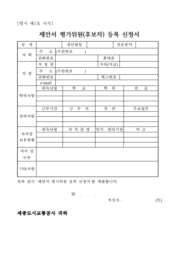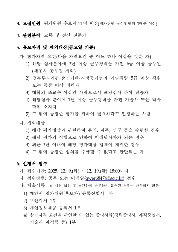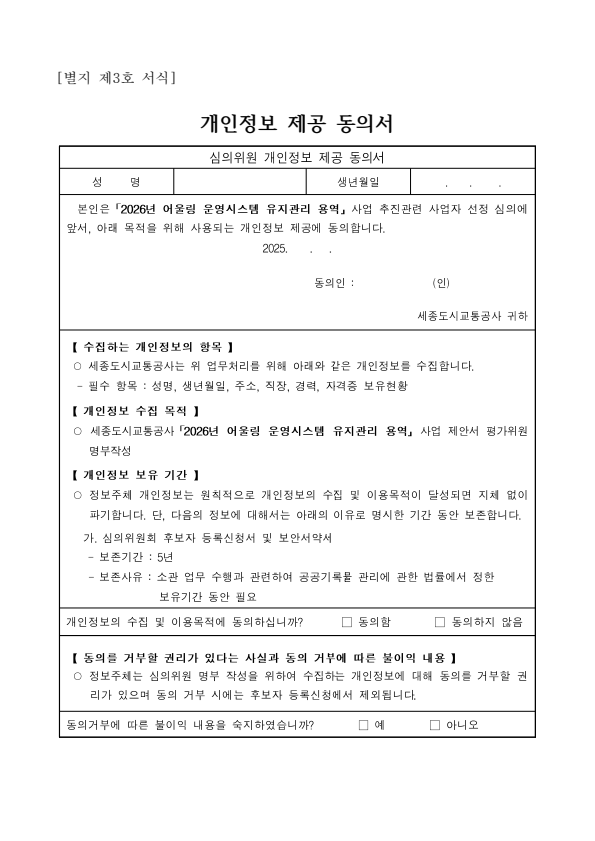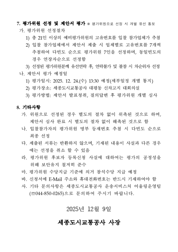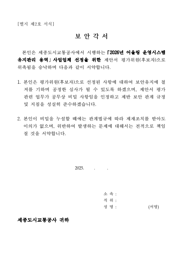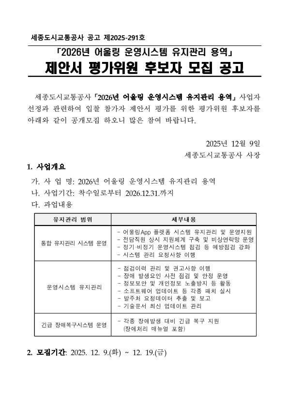 세종도시교통공사 2026년 어울링 운영시스템 유지관리 용역 제안서 평가위원 후보자 모집