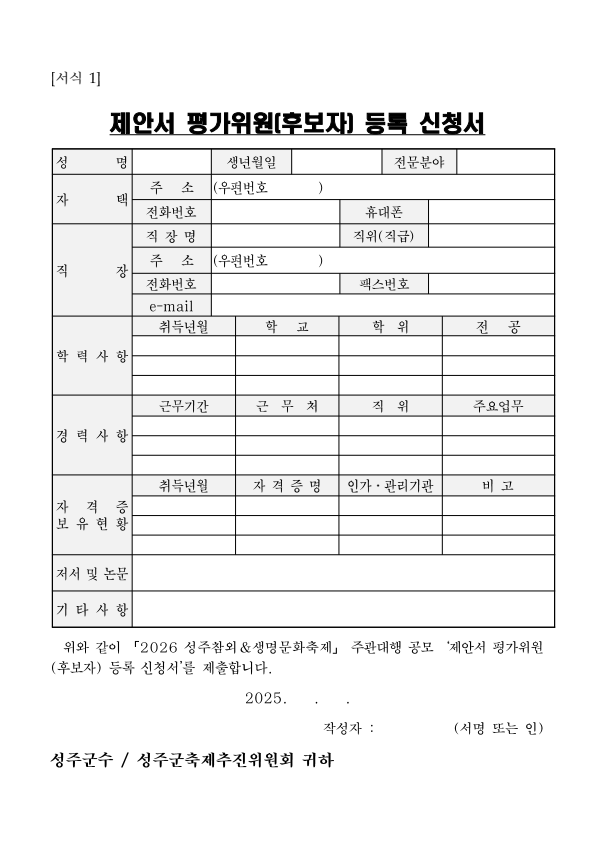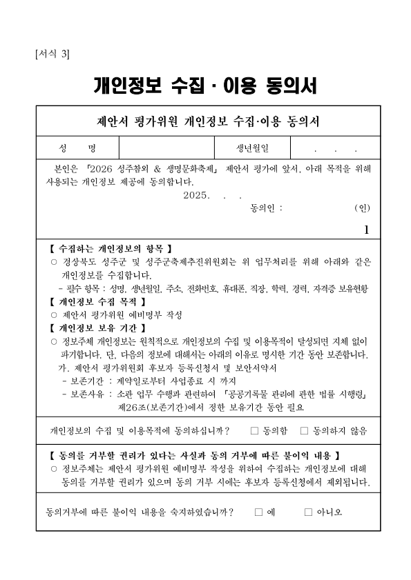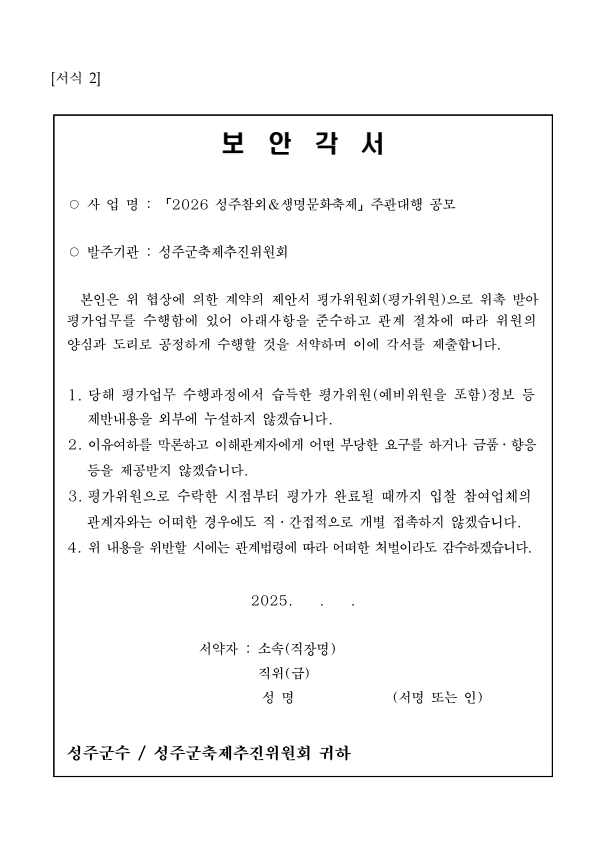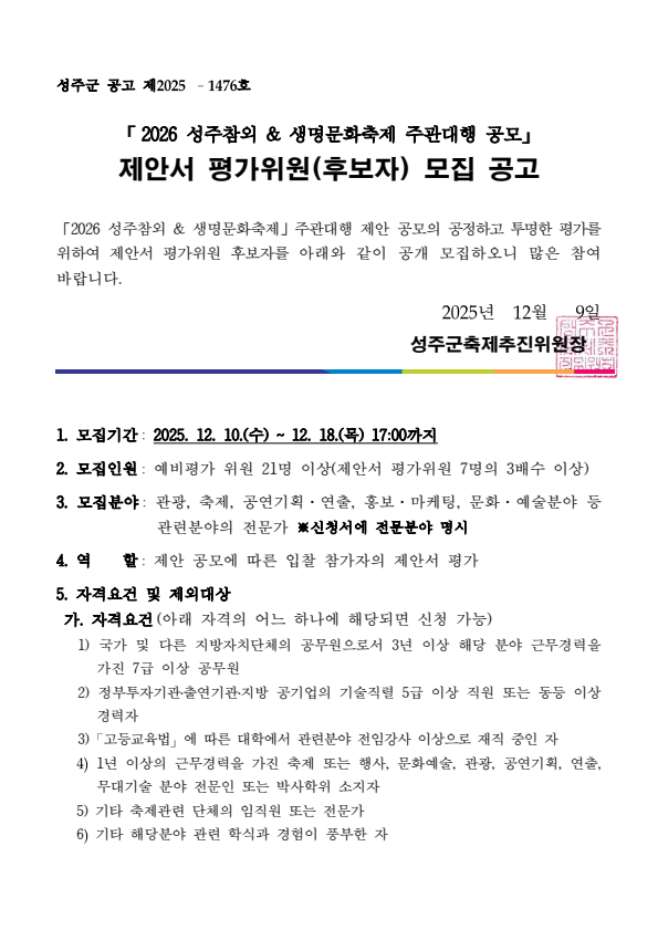 2026 성주참외&생명문화축제 주관대행 공모 제안서 평가위원(후보자) 모집
