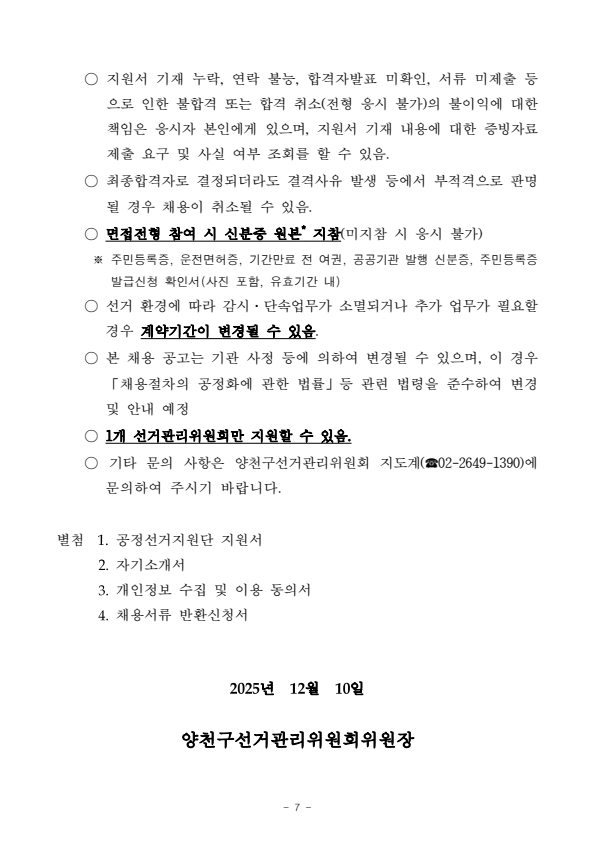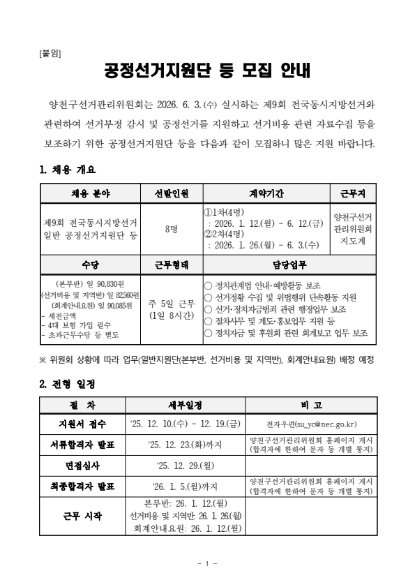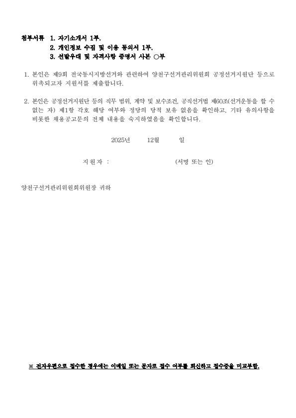 양천구선거관리위원회 제9회 전국동시지방선거 공정선거지원단 모집