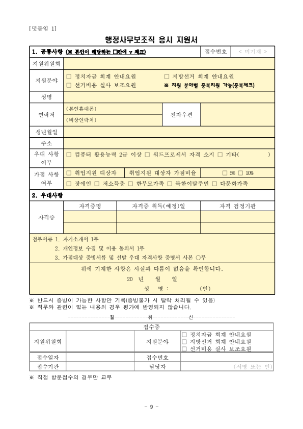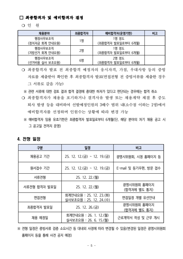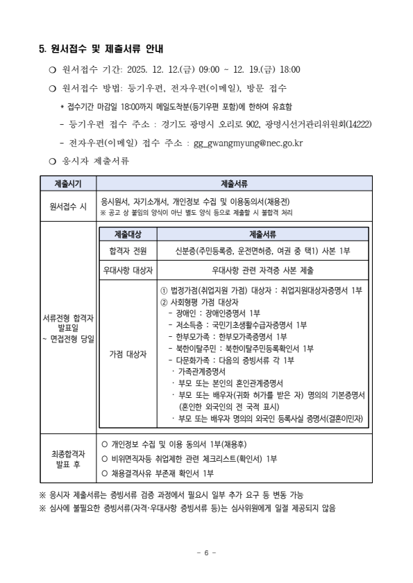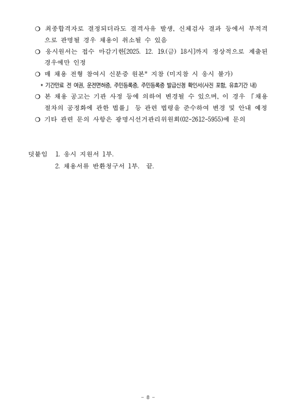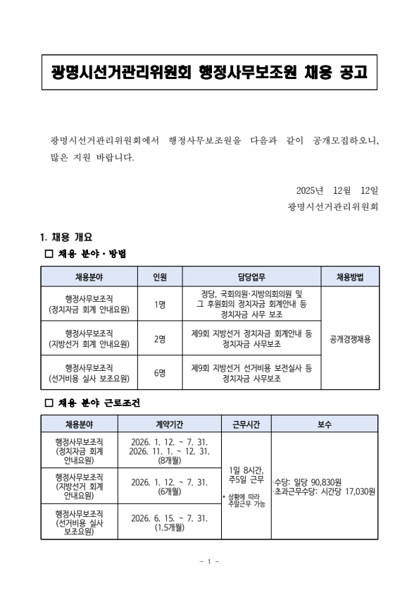광명시 선거관리위원회 2026년도 정치자금 회계 안내요원 등 모집