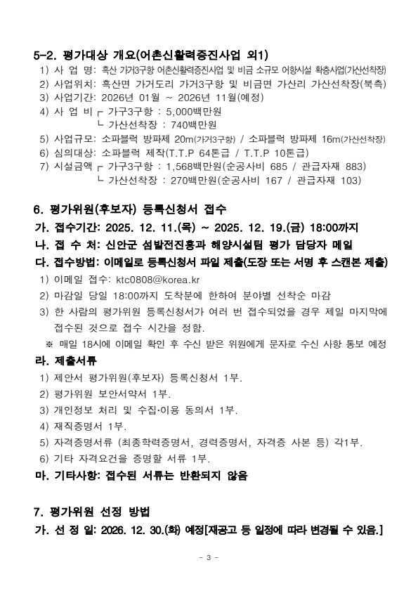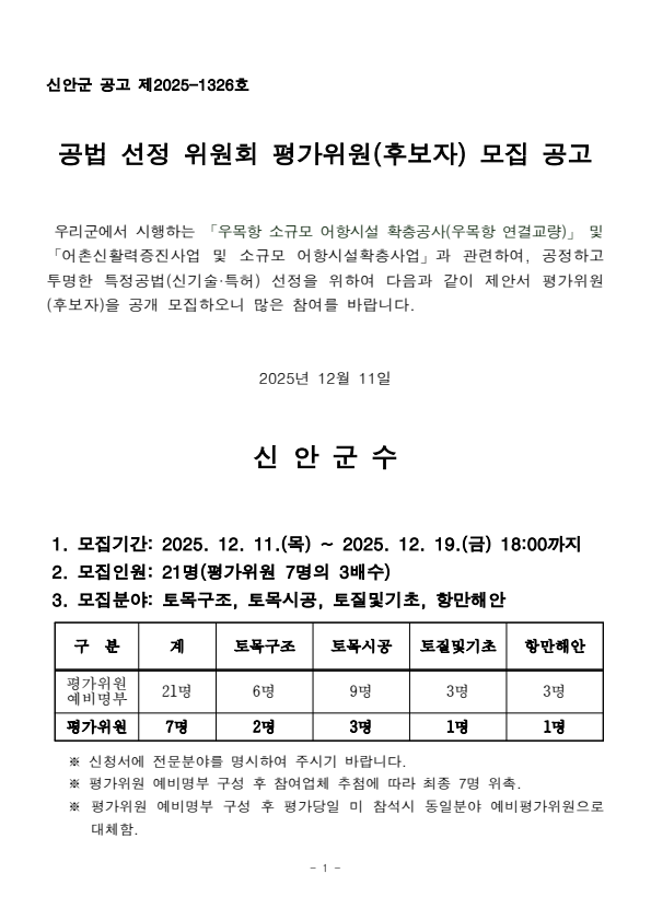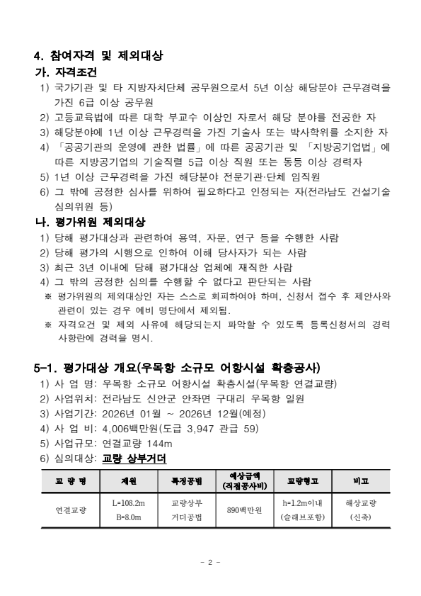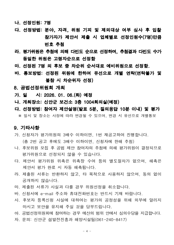 전남 신안군 공법 선정 위원회 평가위원(후보자) 모집