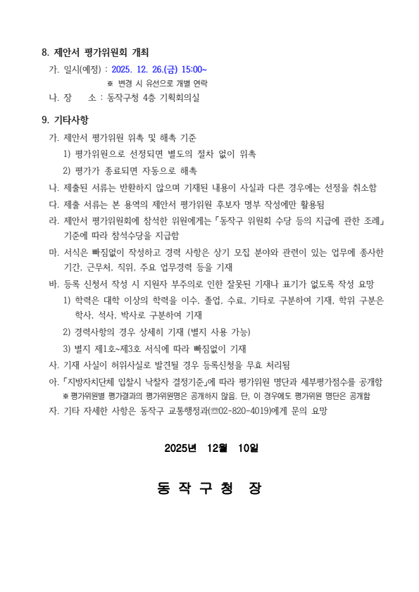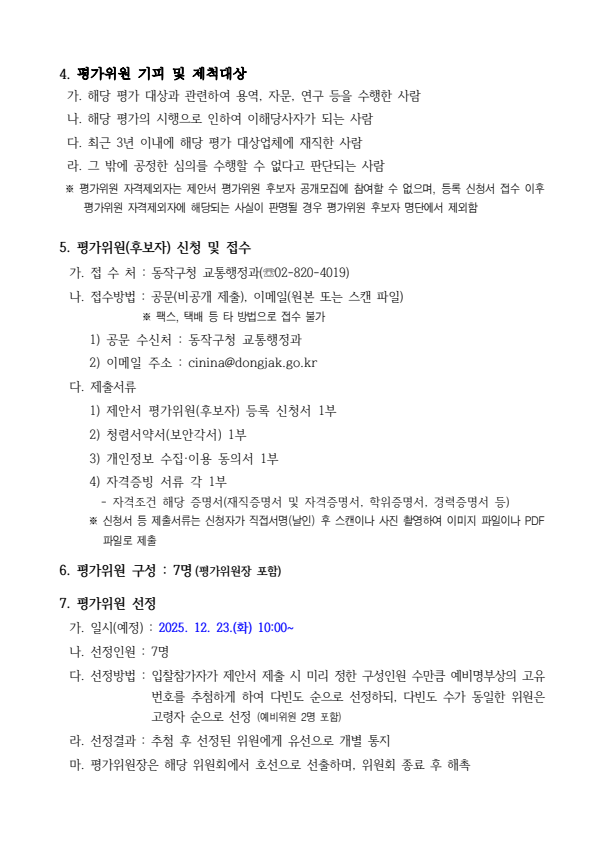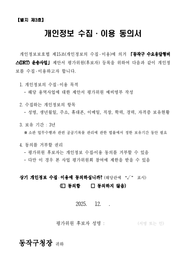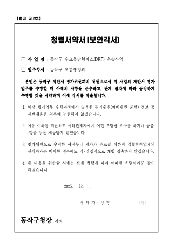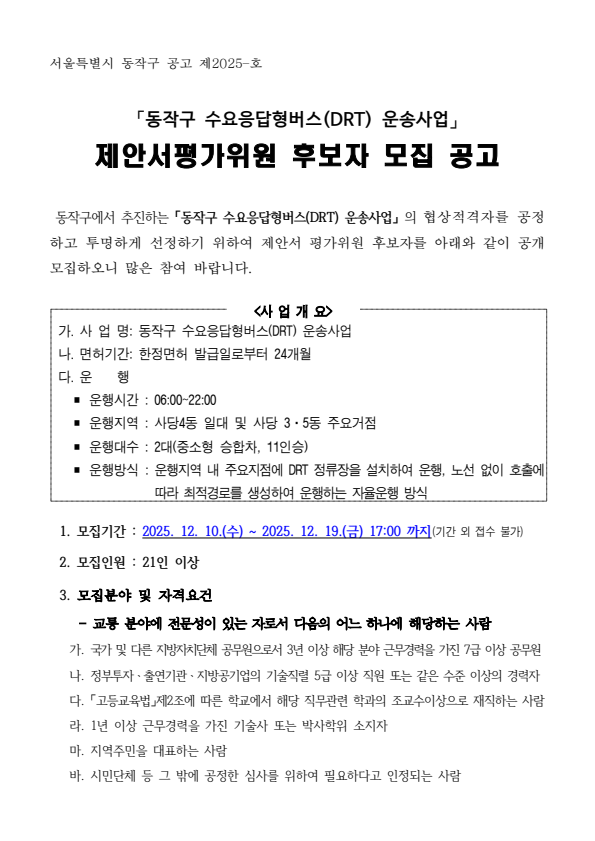 동작구 수요응답형버스(DRT) 운송사업 제안서 평가위원(후보자) 모집