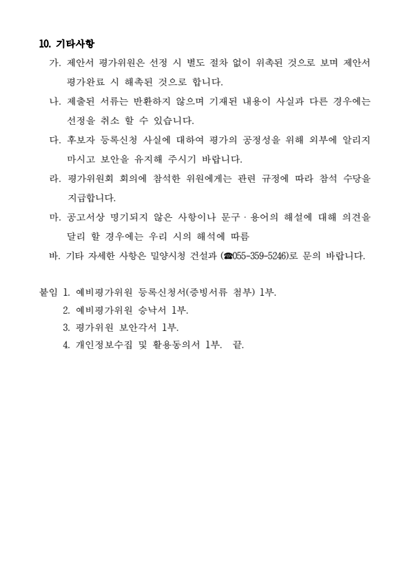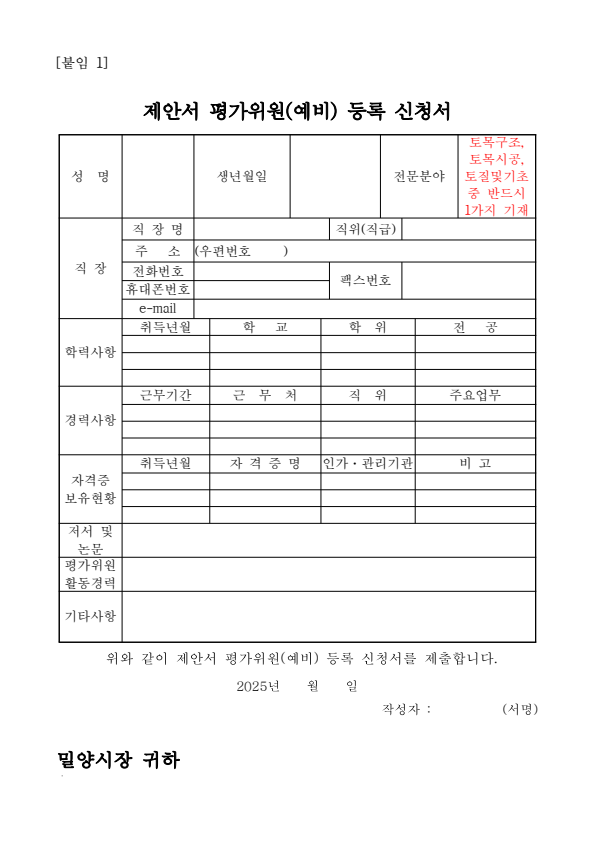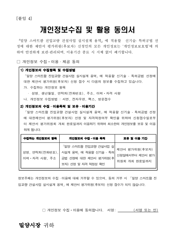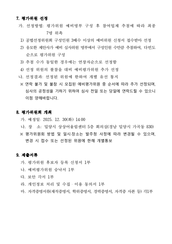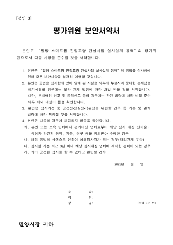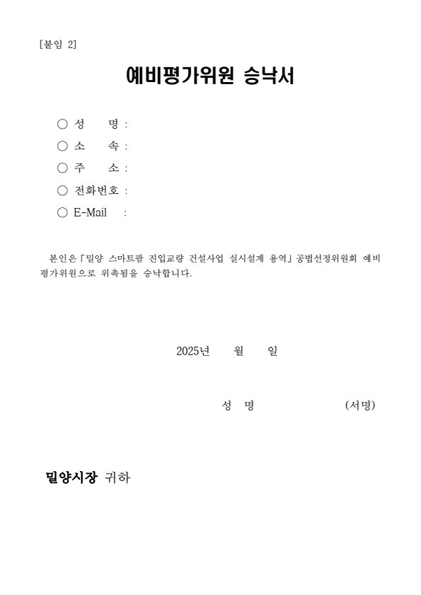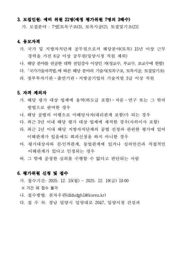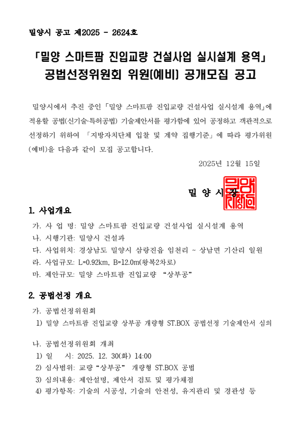 밀양 스마트팜 진입교량 건설사업 실시설계용역 공법선정위원회 위원(예비)공개모집