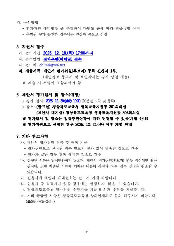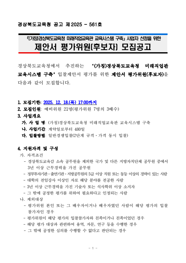 경상북도교육청 미래직업교육관 교육시스템 구축 제안서 평가위원(후보자) 모집