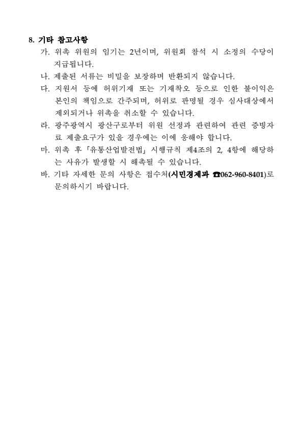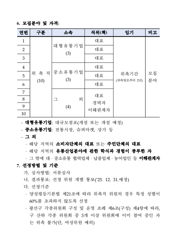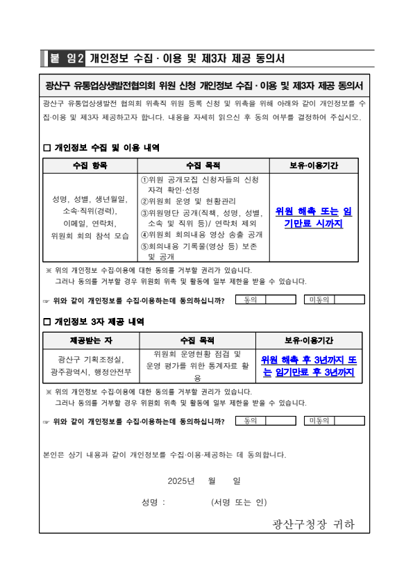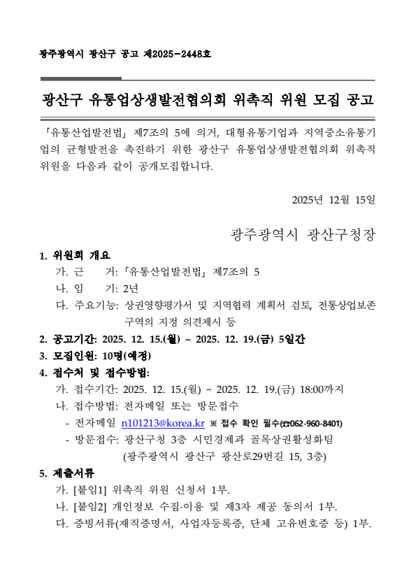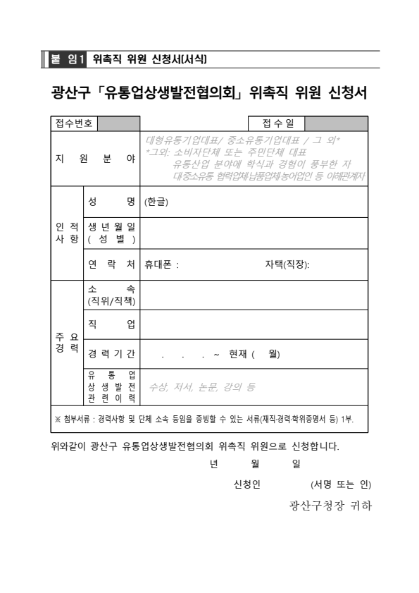 광주광역시 광산구 유통업상생발전협의회 위촉직 위원 모집