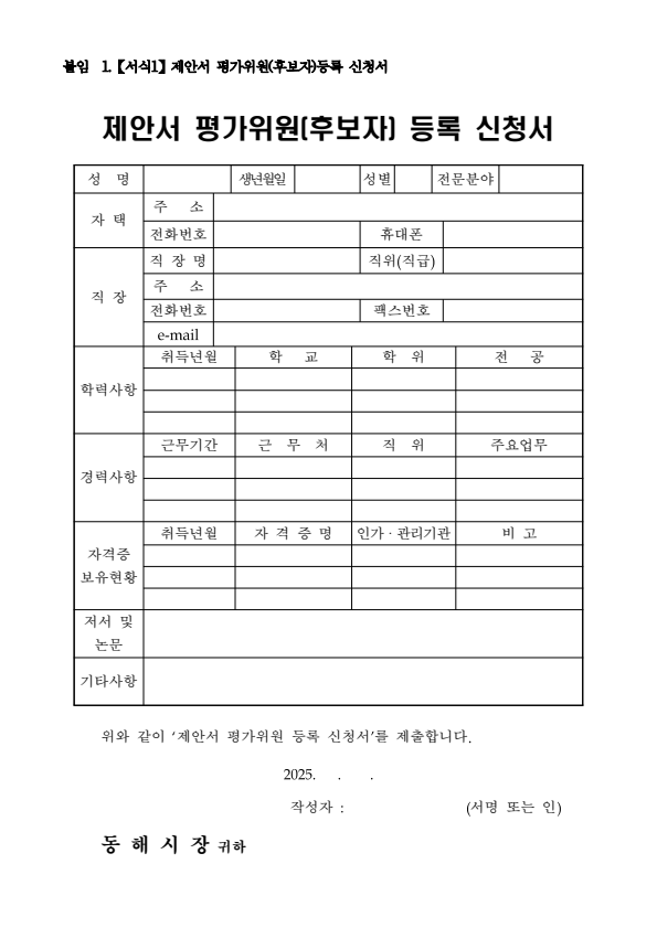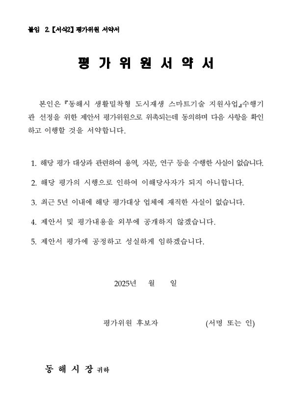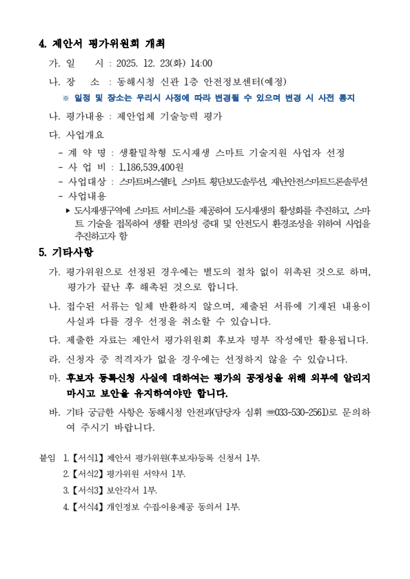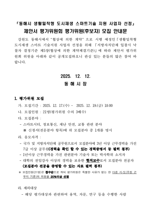동해시 삼화지구 생활밀착형 도시재생 스마트기술 지원사업 제안서 평가위원(후보자)모집