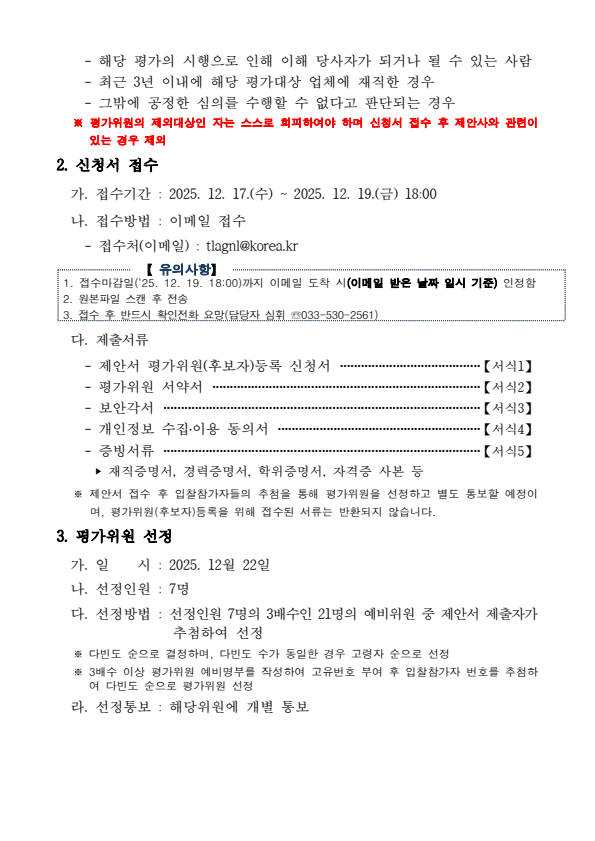 위원풀 구성 요청 기관 이름, 생년월일, 나이, 주소, 이메일, 휴대폰번호, 사진, 경력, 이력, 보유 자격증 중 제공받는 자와 제공협의한 항목 위원풀 구성원에 대한 선발 및 운영 안내 해당 공고의 선발 종료 시까지