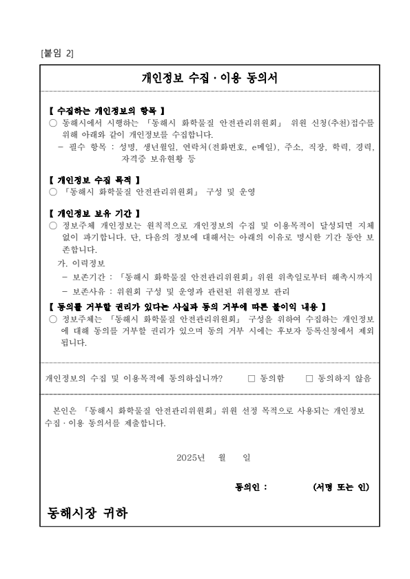 위원풀 구성 요청 기관 이름, 생년월일, 나이, 주소, 이메일, 휴대폰번호, 사진, 경력, 이력, 보유 자격증 중 제공받는 자와 제공협의한 항목 위원풀 구성원에 대한 선발 및 운영 안내 해당 공고의 선발 종료 시까지