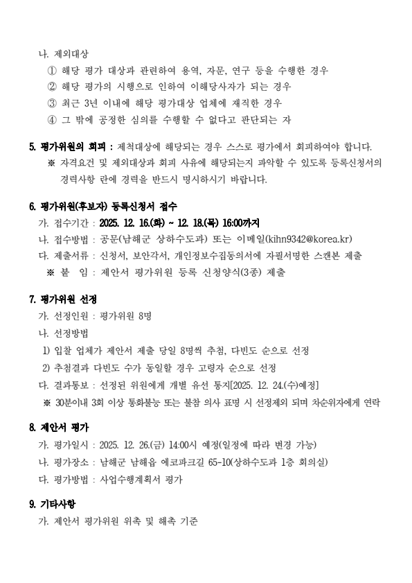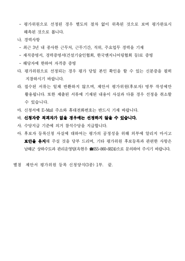 남해군 공공하수처리시설 수질원격감시시스템(TMS) 유지관리용역 제안서 평가위원(후보자)공개모집