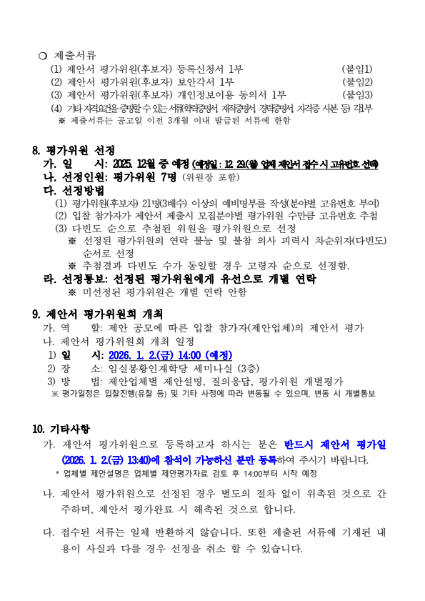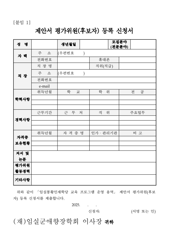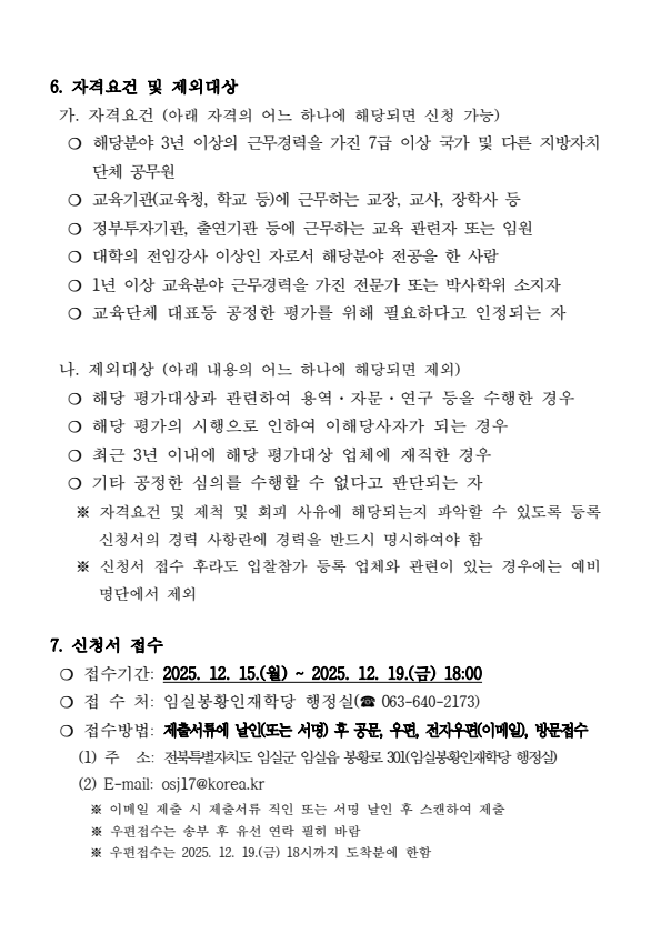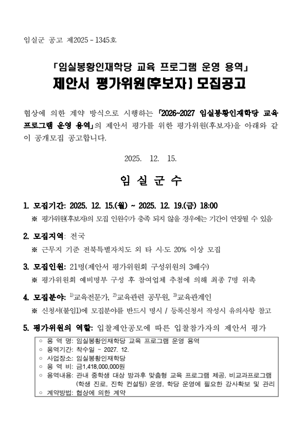 임실군 임실봉황인재학당 교육프로그램 운영 용역 제안서 평가위원회 위원(후보자) 모집